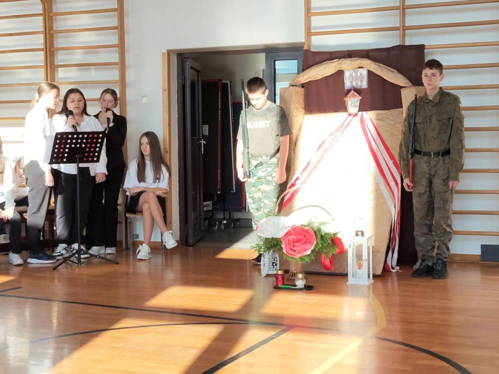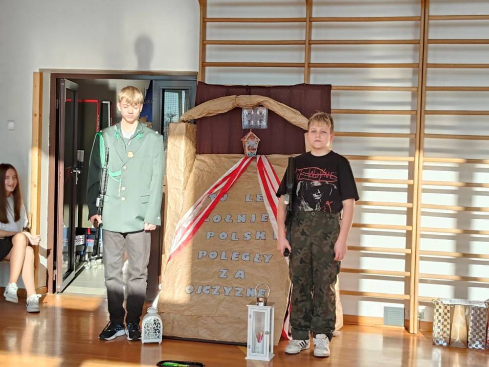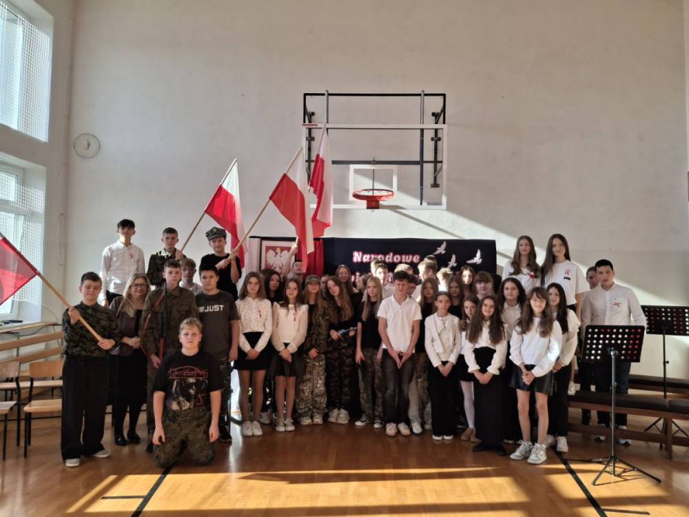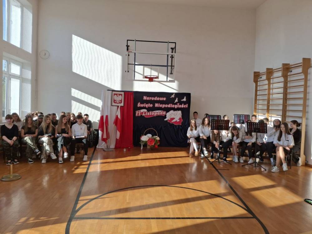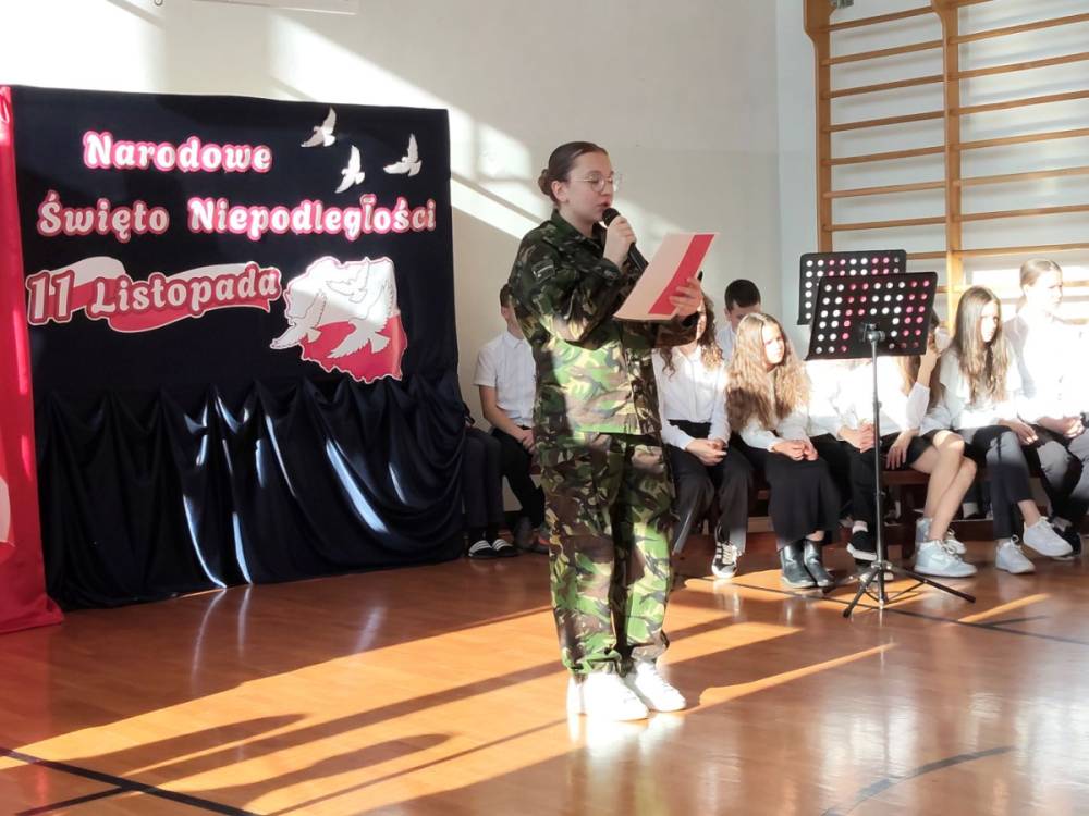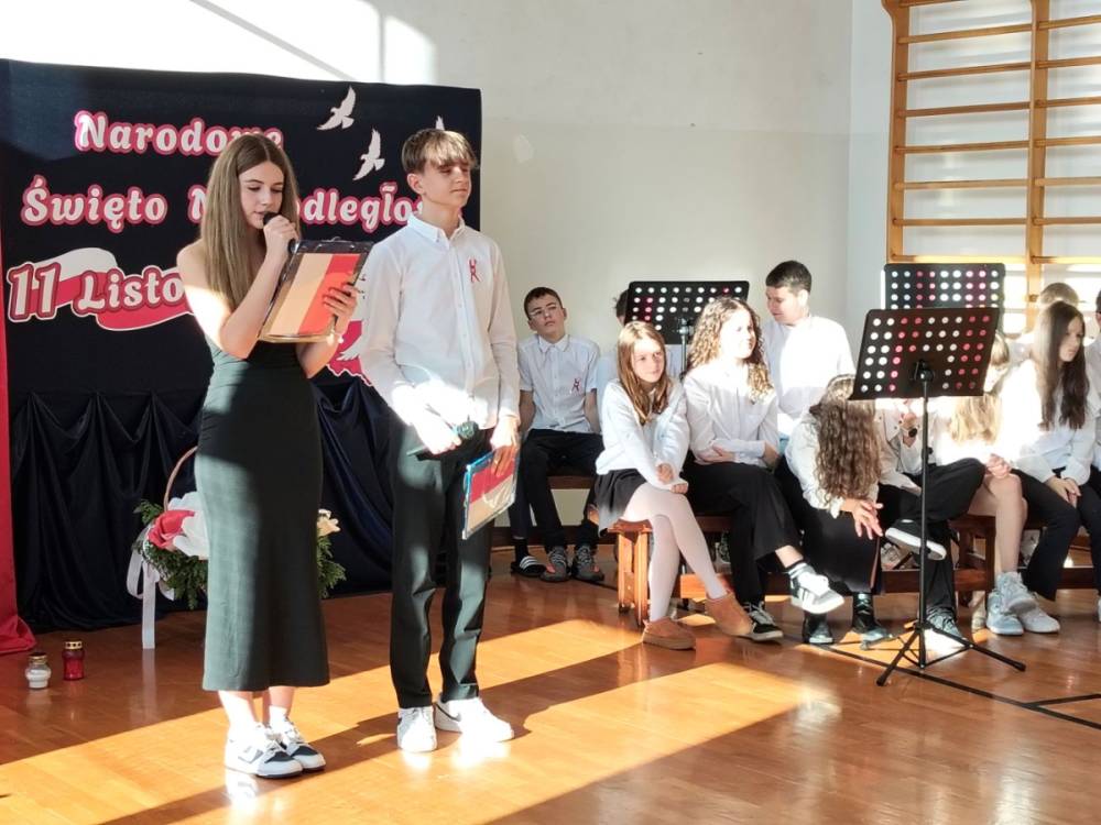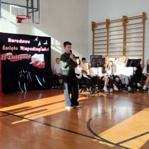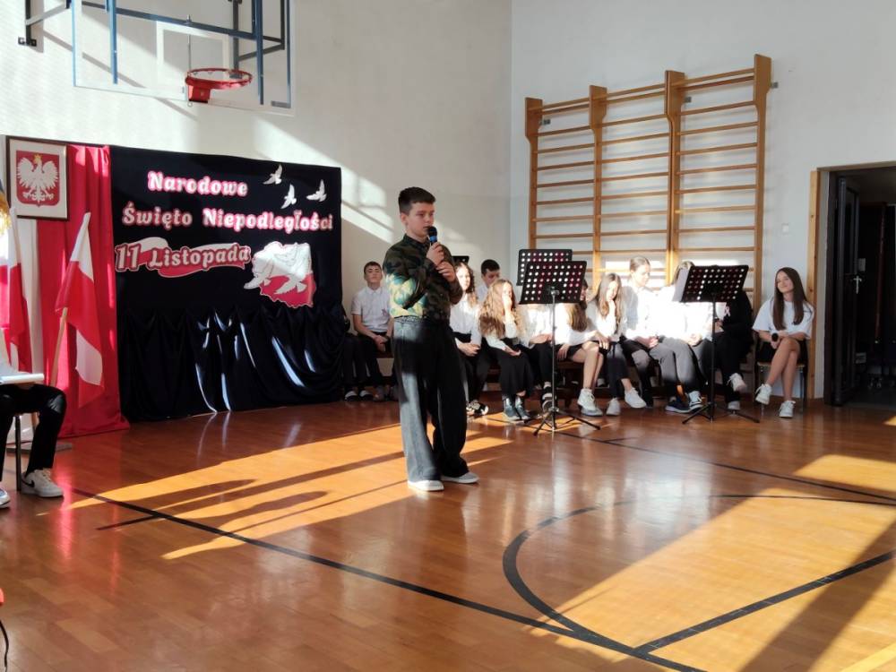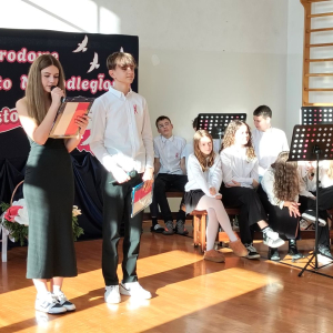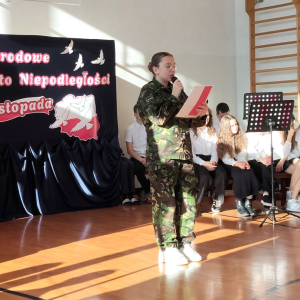 5 listopada 2025r. cała społeczność szkolna wzięła udział w akademii upamiętniającej 107. rocznicę Odzyskania Niepodległości przez Polskę. Montaż słowno - muzyczny pod kierunkiem p. Barbary Celińskiej-Mysław i p. Anny Ciołek przedstawiła młodzież z klas V-VIII. Wszystkim uczniom dziękujemy za aktywne włączenie się w przygotowanie tej uroczystości, przygotowanie dekoracji i strojów. Słowo wiązane, recytacje, pieśni i marsz upamiętniły to tak ważne dla nas wydarzenie, które drogo okupione zostało życiem wielu pokoleń Polaków.