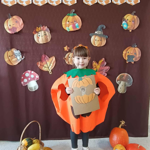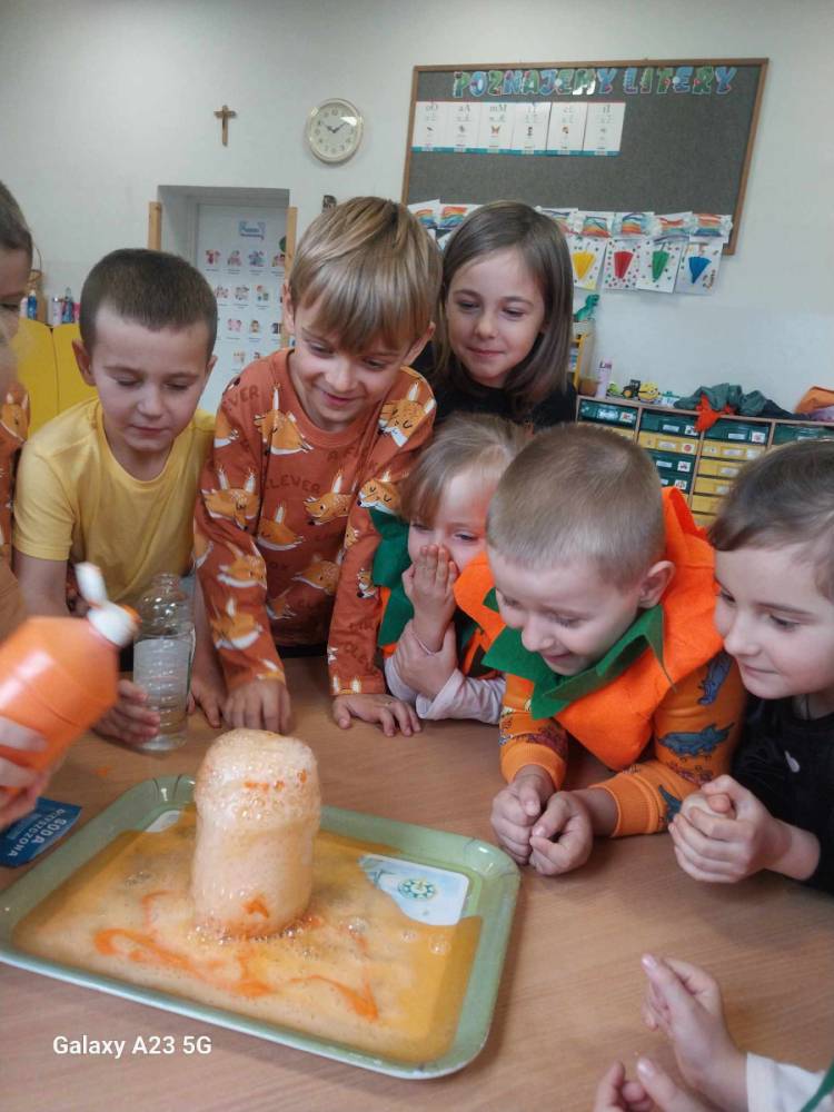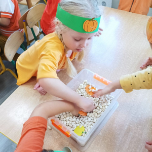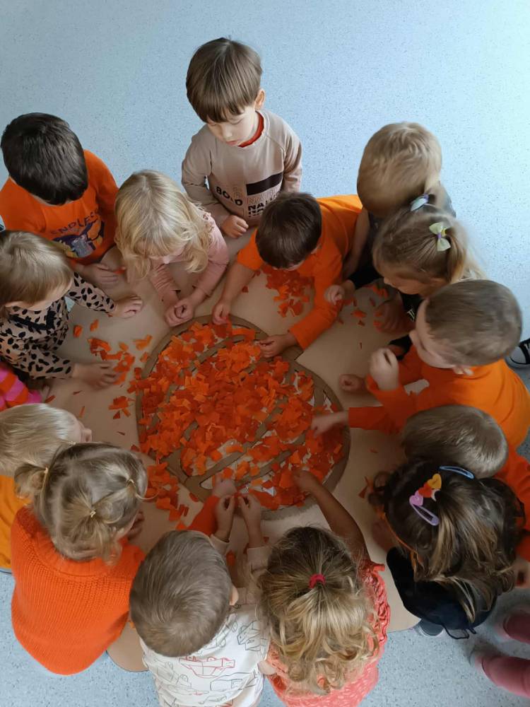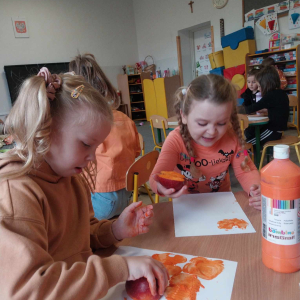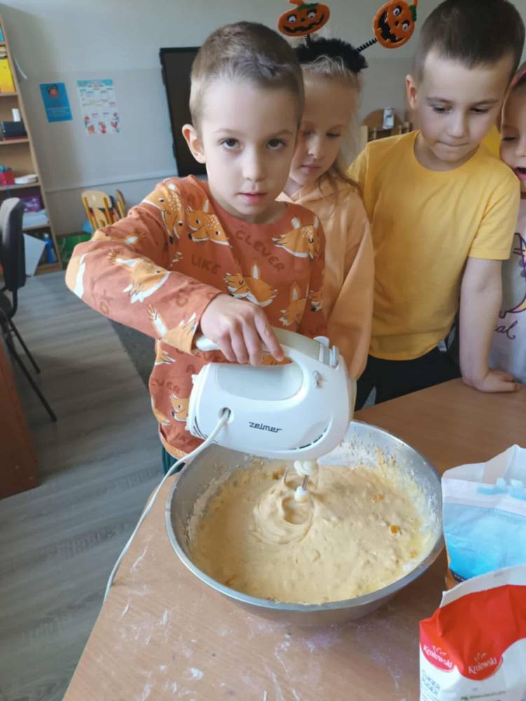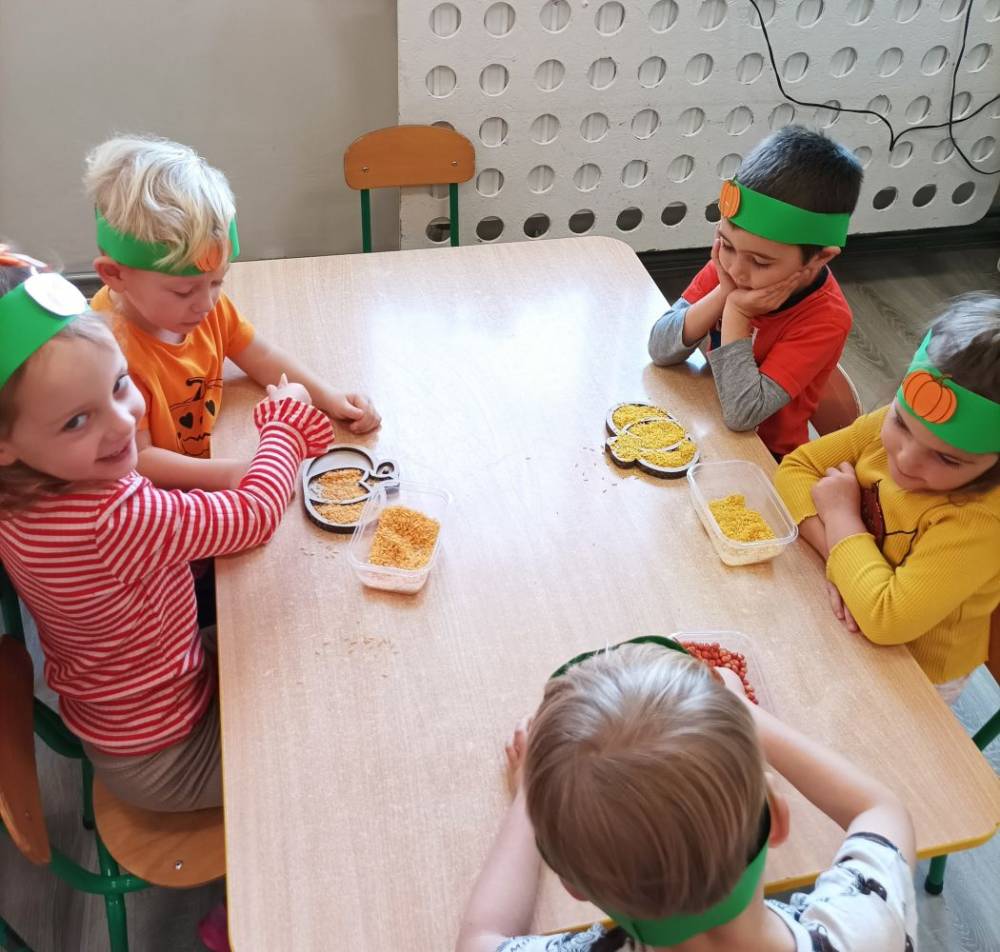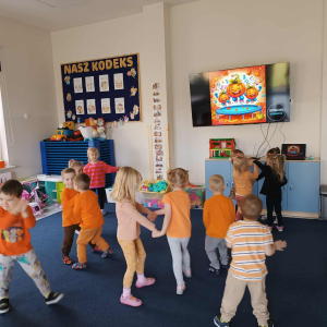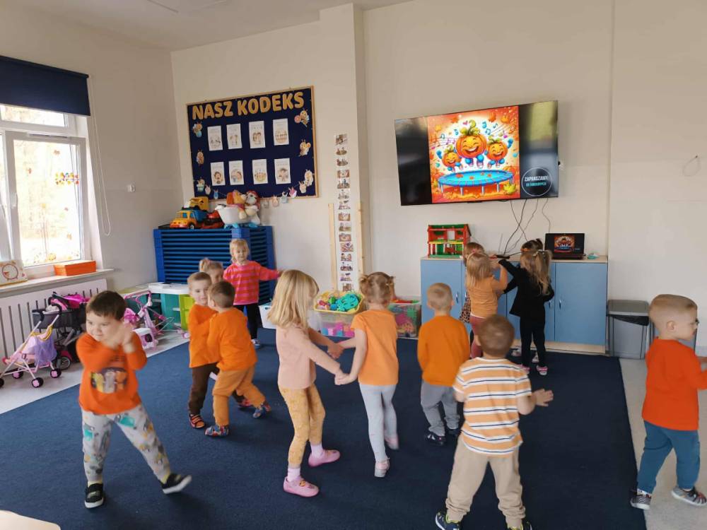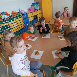W ostatnim tygodniu października w naszym przedszkolu odbył się „Dzień Dyni”. Była to świetna okazja do poznania wielkiej różnorodności dyń i wzbogacenia wiedzy na ich temat. „Święto Dyni” rozpoczęliśmy wspólnym tańcem oraz rozmową na temat dyni. Dzieci dowiedziały się, że jest ona bardzo zdrowym warzywem i można z niej przygotować wiele smacznych dań. W poszczególnych grupach odbyły się ciekawe zajęcia i zabawy m.in.: pływająca dynia, przeliczanie dyń, szeregowanie od największej do najmniejszej, dyniowy slalom, podaj dynię. Nie zabrakło tańców, śpiewów, zabaw muzyczno-ruchowych oraz kreatywnych prac plastycznych. Dużo radości sprawił dzieciom udział w sesji zdjęciowej w stroju dyni. Zwieńczeniem tego dnia było przygotowanie gofrów i deserów z dyni, które nasze przedszkolaki spałaszowały ze smakiem. Ten dzień przyniósł wiele niezapomnianych wrażeń, ciekawości, odkrywania i zabawy.