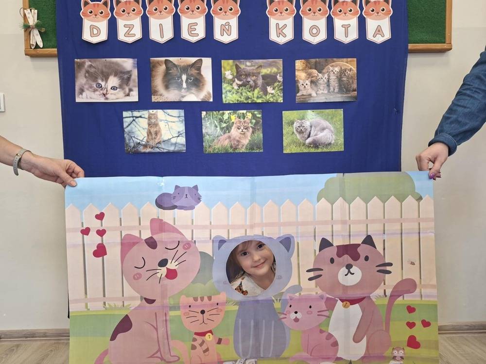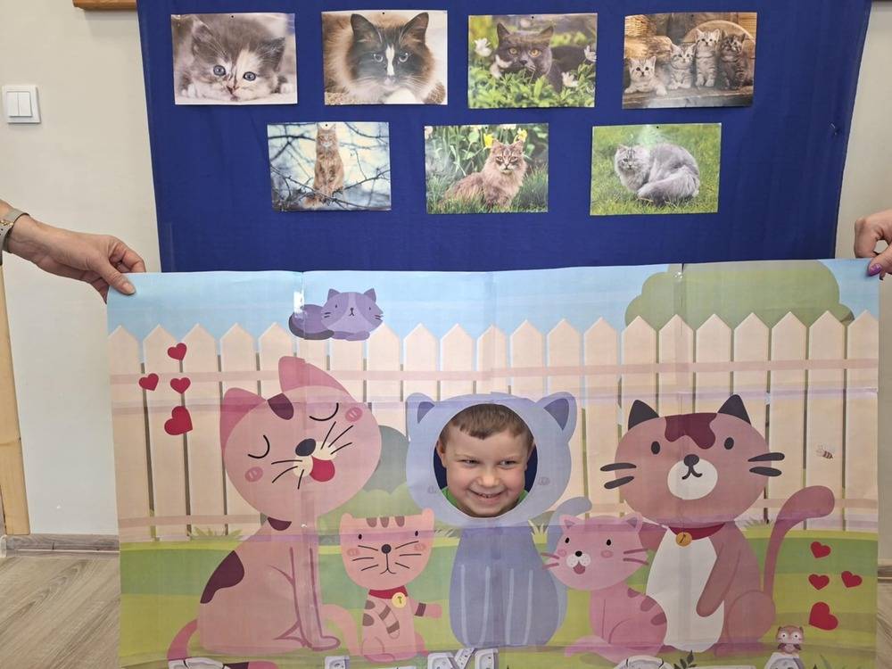 W grupie Motylki odbył się wyjątkowy Dzień Kota! Z tej okazji dzieci miały okazję poznać fascynujący świat naszych futrzanych przyjaciół. Podczas zajęć dzieci wysłuchały ciekawostek na temat kotów – dowiedziały się, jak żyją te zwierzęta, co jedzą, a także jakie akcesoria są niezbędne w codziennej opiece nad kotem. Dzieci zapoznały się z takimi przedmiotami jak kuweta, transporter czy legowisko, ucząc się ich funkcji i znaczenia. Dużo radości sprawiła dzieciom kocia gimnastyka, podczas której mogły wcielić się w ruchliwe kotki, naśladując ich skoki, wyginanie ciałka i inne zabawy. Na koniec dzieci wykonały piękna prace plastyczną- kotek.
