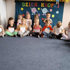 15 września obchodziliśmy Dzień Kropki. Święto kreatywności i pomysłowości. Tego dnia dzieci ubrane w kropeczki brały udział w różnych zabawach ruchowych, muzycznych, plastycznych czy matematycznych związanych z kropkami. Zabawy aktywizowały przedszkolaki w wielu obszarach – emocjonalnym, społecznym, ruchowym i poznawczym. Przedszkolaki szukały ukrytych kropek w sali przedszkolnej oraz wykonały kompozycje z kółek różnej wielkości i koloru rozwijając przy tym swoje twórcze myślenie. Na zakończenie każde dziecko otrzymało medal Dnia Kropki. Tego dnia było bardzo kolorowo i wesoło.