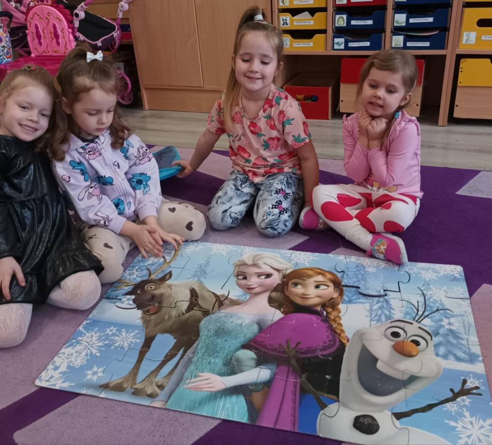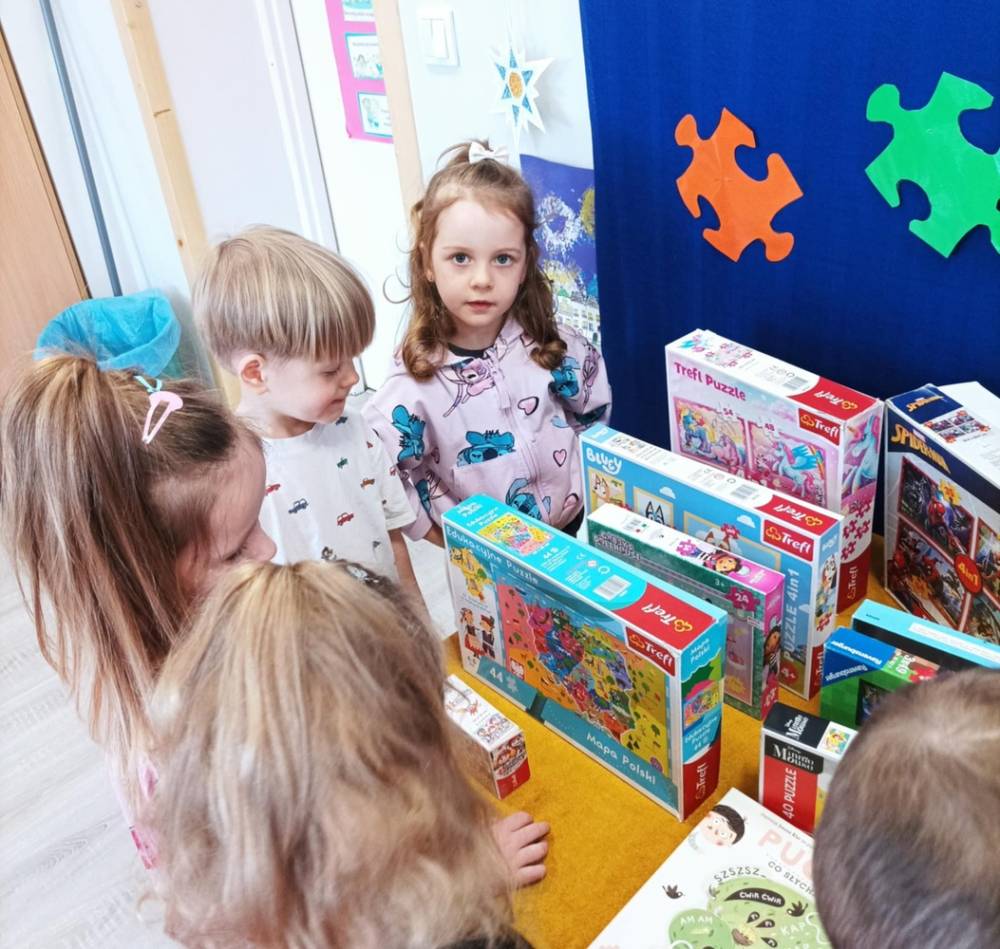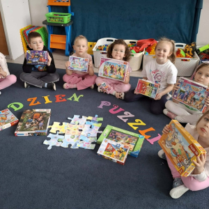 Dzisiaj w naszym przedszkolu obchodziliśmy Dzień Puzzli! Dzieci miały okazję rozwijać swoją spostrzegawczość, koncentrację oraz zdolności manualne, układając różnorodne puzzle – od małych obrazków po duże puzzle podłogowe dla całej grupy.