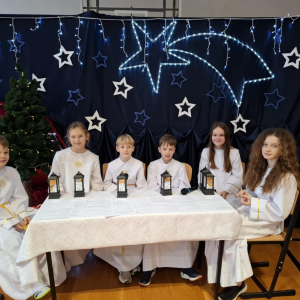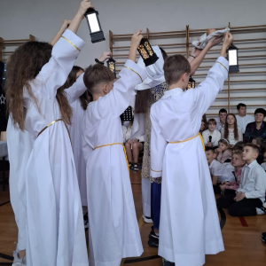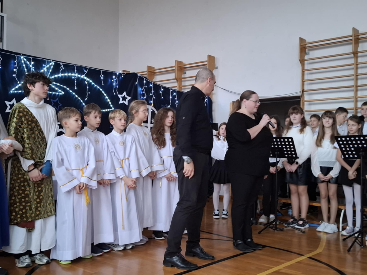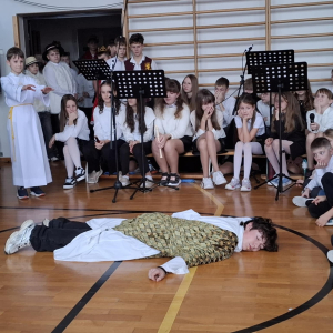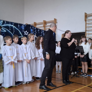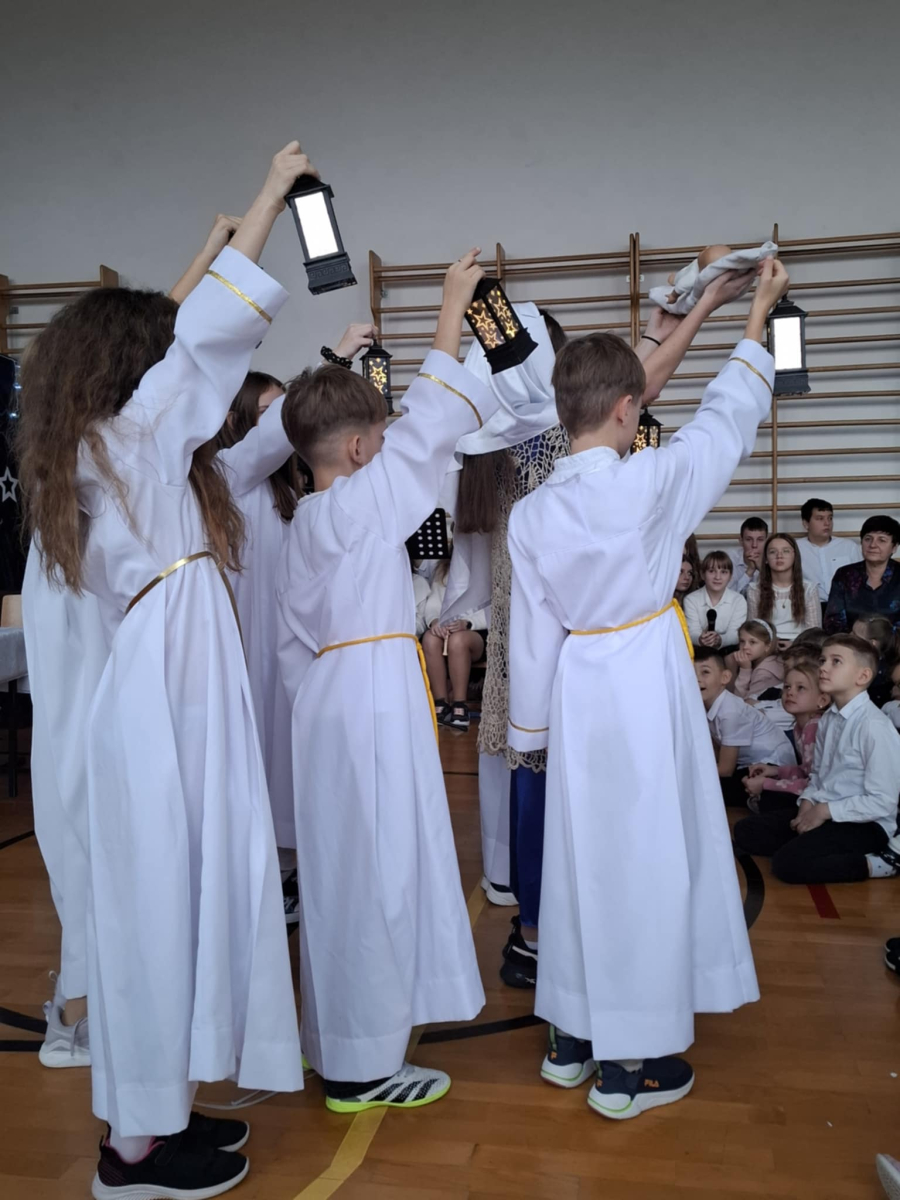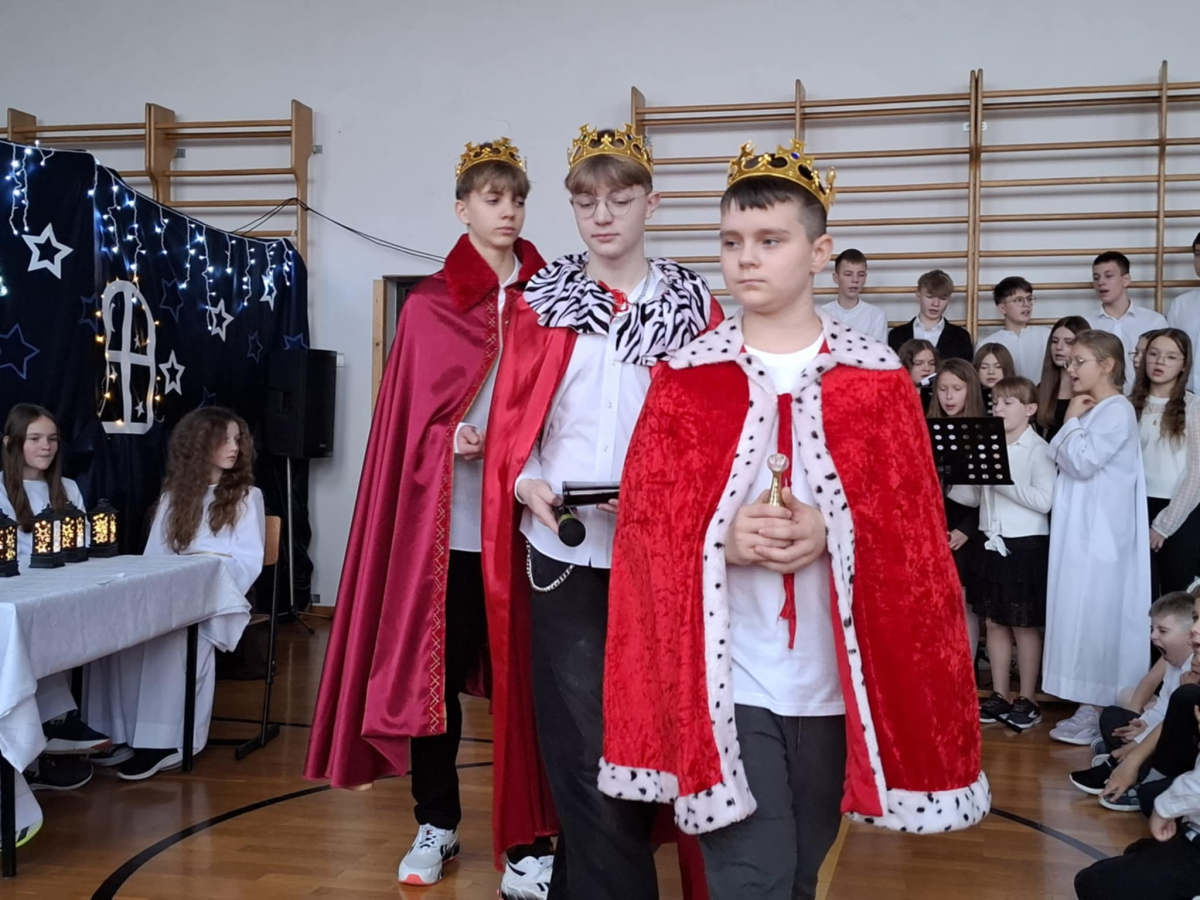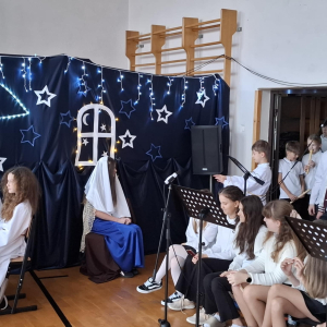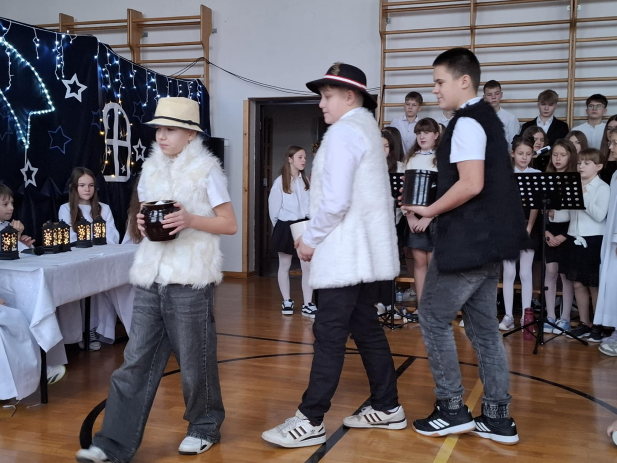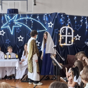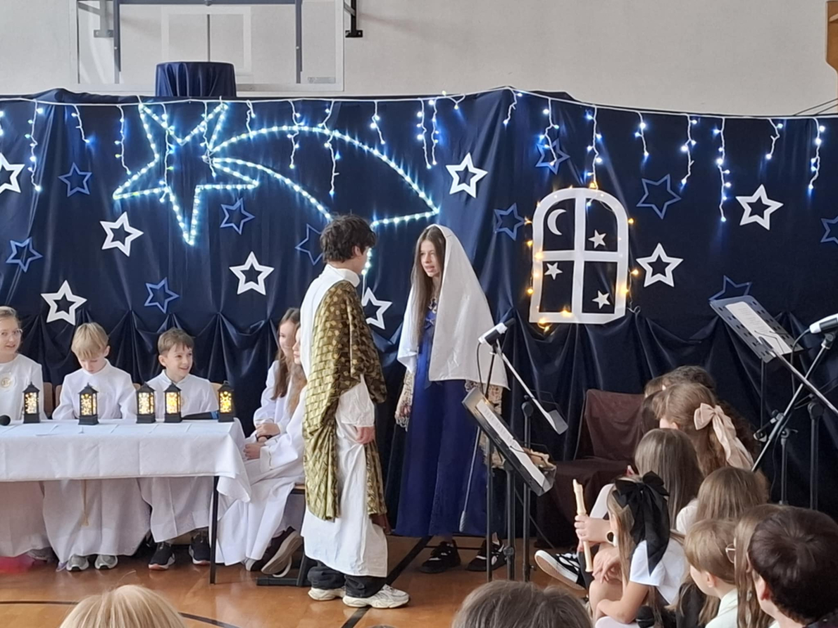 18 grudnia w naszej szkole odbyły się wyjątkowe jasełka bożonarodzeniowe, przygotowane przez uczniów klas 4–8. Młodzi artyści z wielkim zaangażowaniem zaprezentowali historię narodzin Jezusa, wprowadzając widzów w świąteczny nastrój. Przedstawienie uświetniły piękne kolędy śpiewane przez chór, starannie przygotowane stroje i rekwizyty oraz nastrojowa scenografia.