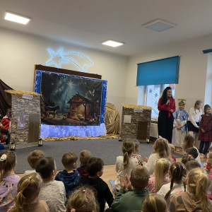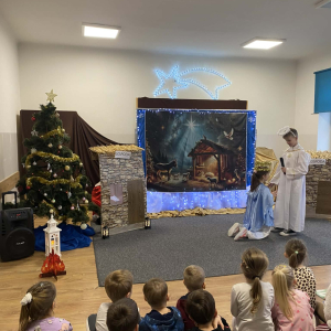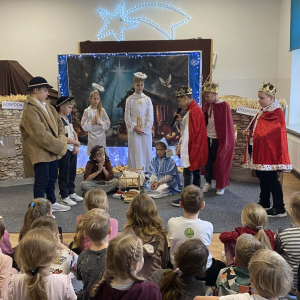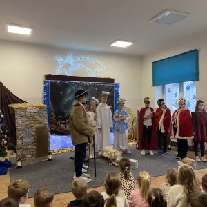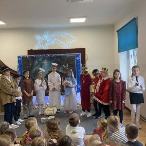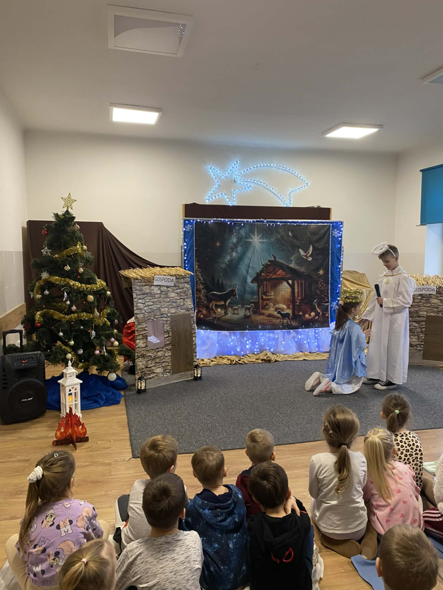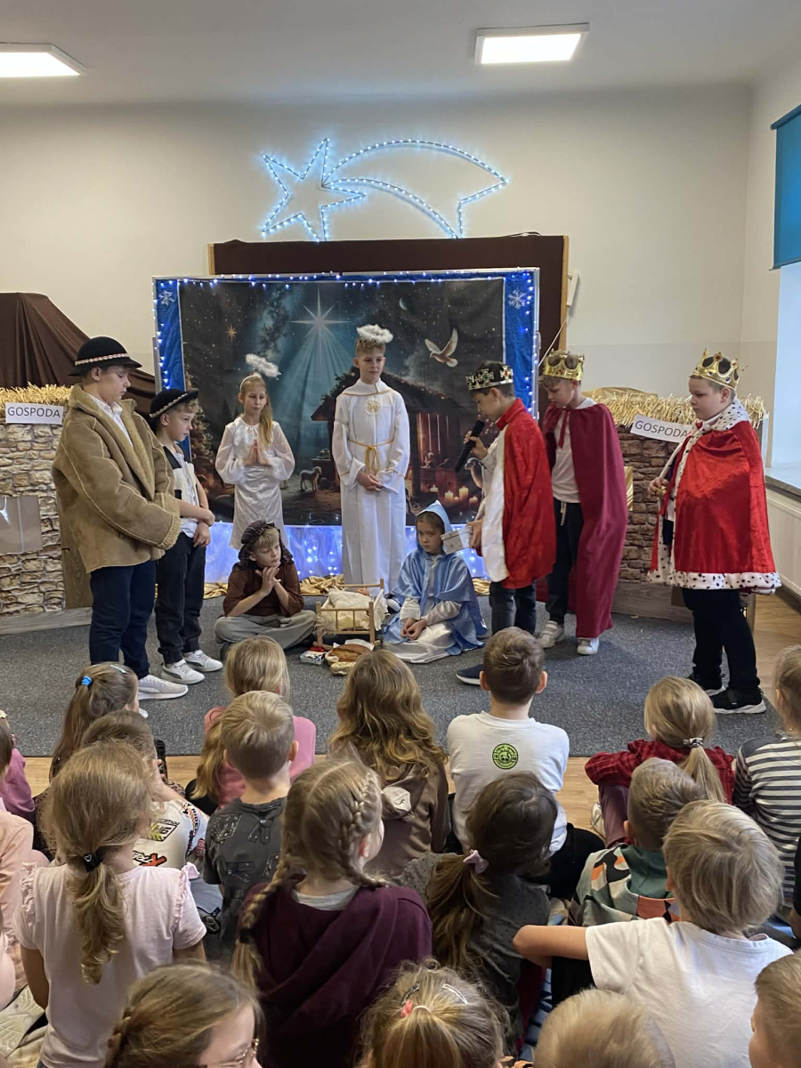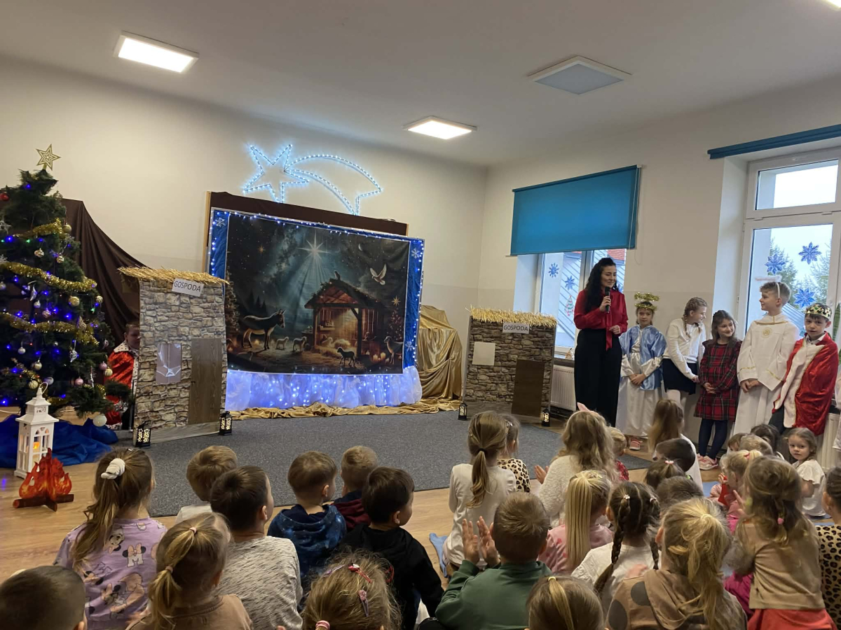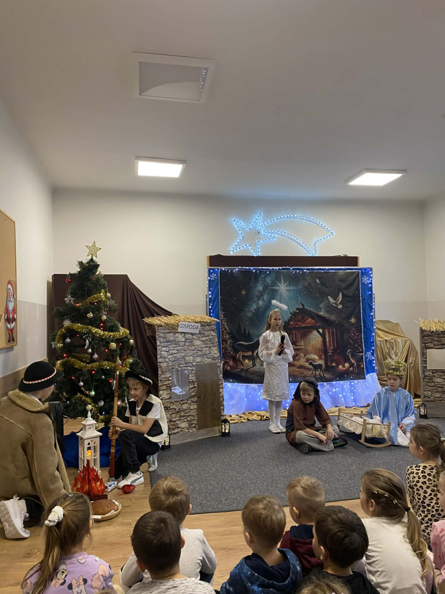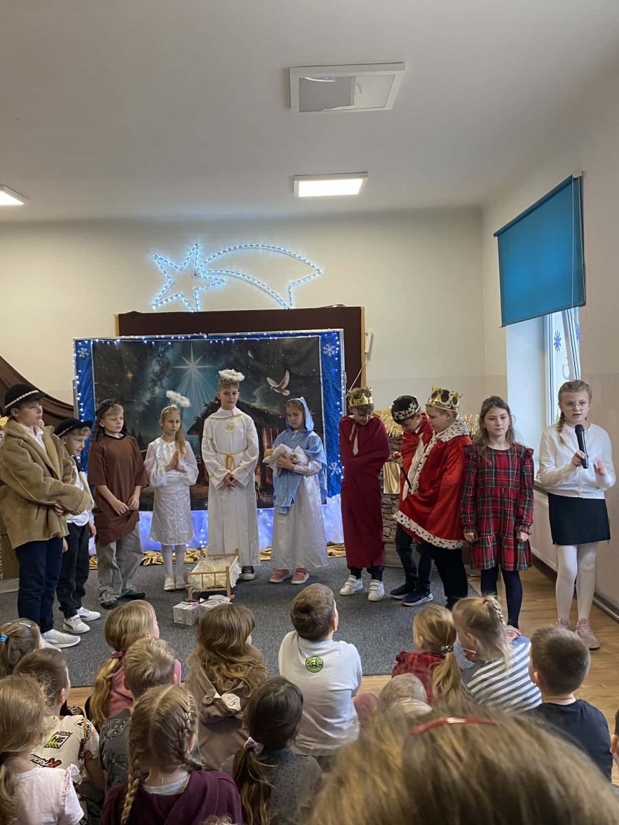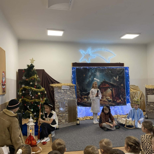 W przedświątecznej atmosferze radości i oczekiwania na narodziny Jezusa klasa 3b przygotowała jasełka. Przedstawienie obejrzały grupy przedszkolne oraz uczniowie klas 1–3, a w godzinach popołudniowych również rodzice, którzy specjalnie przybyli, aby podziwiać występ swoich dzieci.