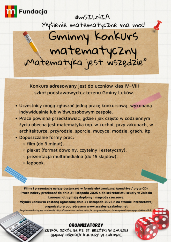 Kultury w Łukowie organizują konkurs "Matematyka jest wszędzie".