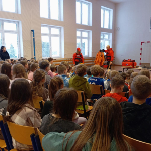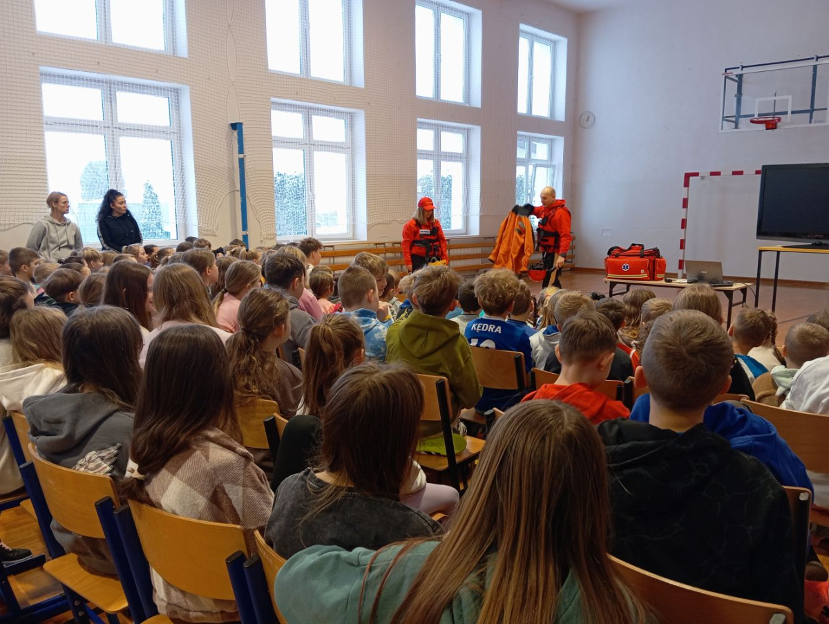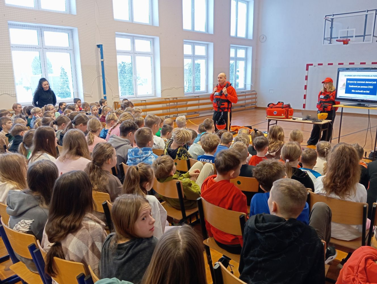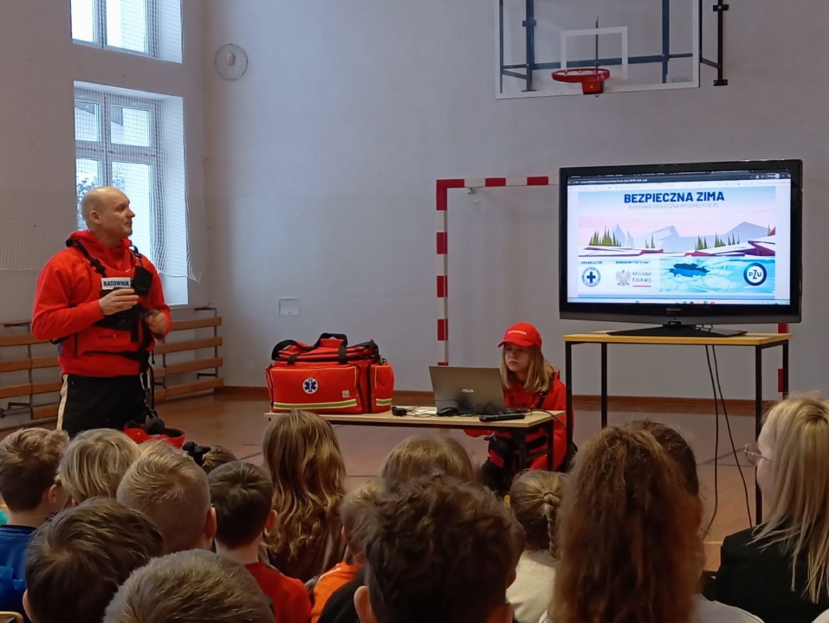 W naszej szkole odbyło się spotkanie edukacyjne z ratownikami Wodnego Ochotniczego Pogotowia Ratunkowego (WOPR). W wydarzeniu uczestniczyli uczniowie klas 1–8. Ratownicy opowiadali o zasadach bezpieczeństwa podczas zimowego wypoczynku, ze szczególnym uwzględnieniem zagrożeń związanych z przebywaniem na zamarzniętych akwenach wodnych.