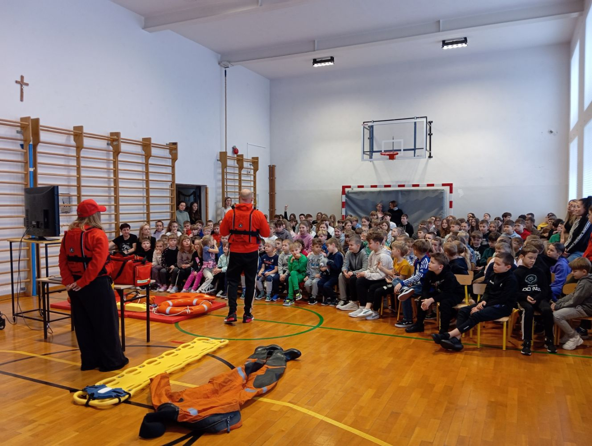 Poruszono również temat odpowiedzialnych zachowań podczas zabaw zimowych. Spotkanie miało charakter profilaktyczny i cieszyło się dużym zainteresowaniem uczniów. Zdobyta wiedza z pewnością przyczyni się do zwiększenia świadomości i bezpieczeństwa dzieci. Dziękujemy ratownikom WOPR za cenną lekcję i zaangażowanie w edukację najmłodszych.