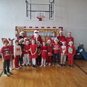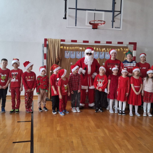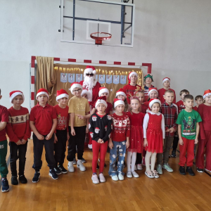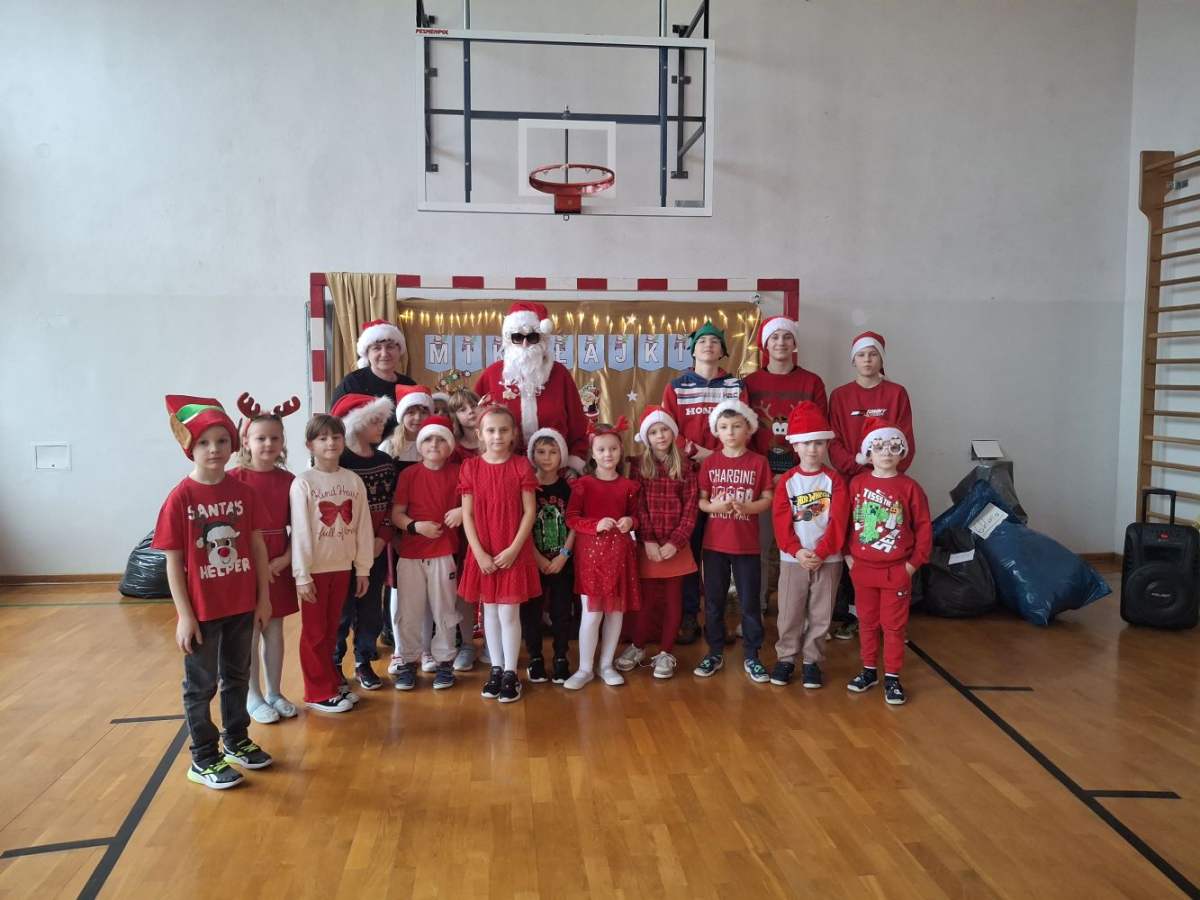 Mikołaj obdarował każdą klasę, a w zamian za prezenty usłyszał od dzieci piosenki, mikołajowe rymowanki oraz tańce.