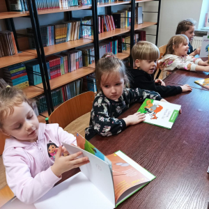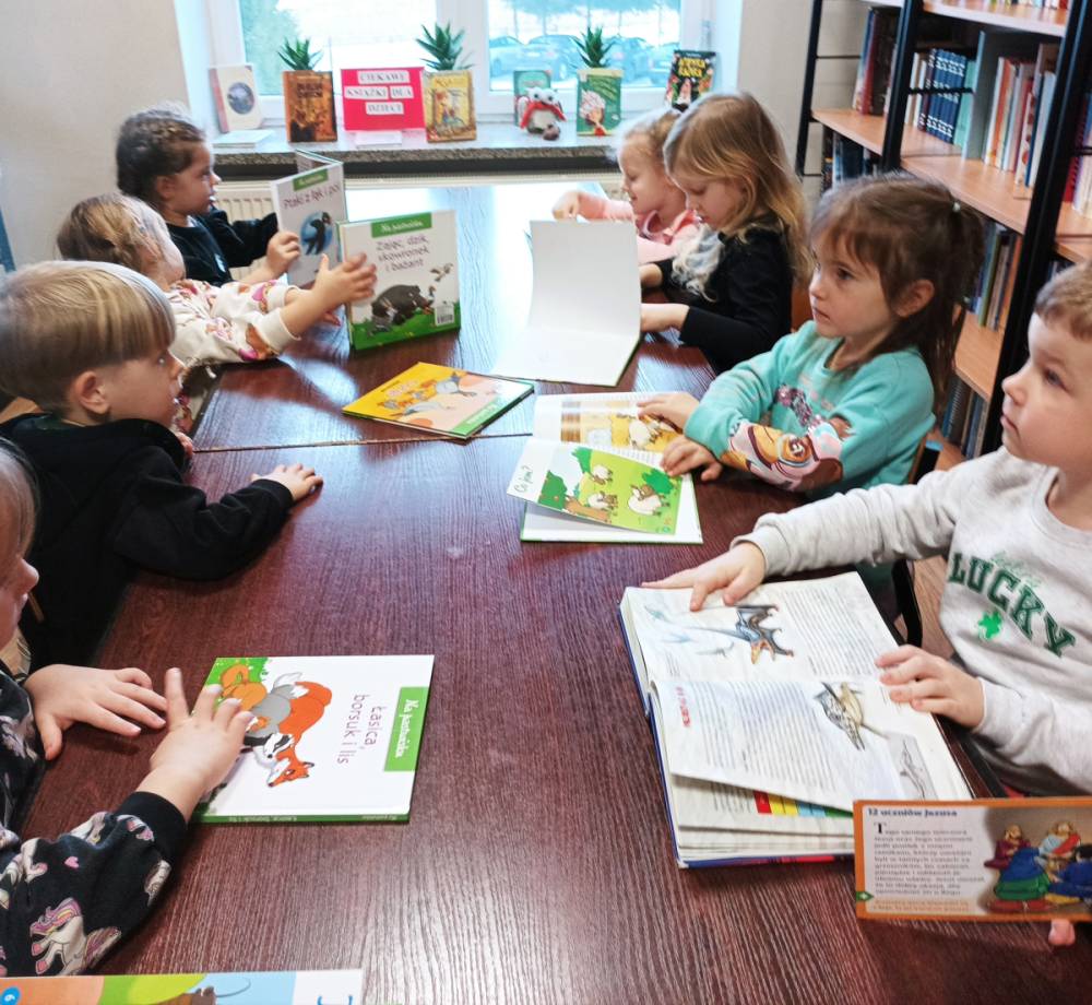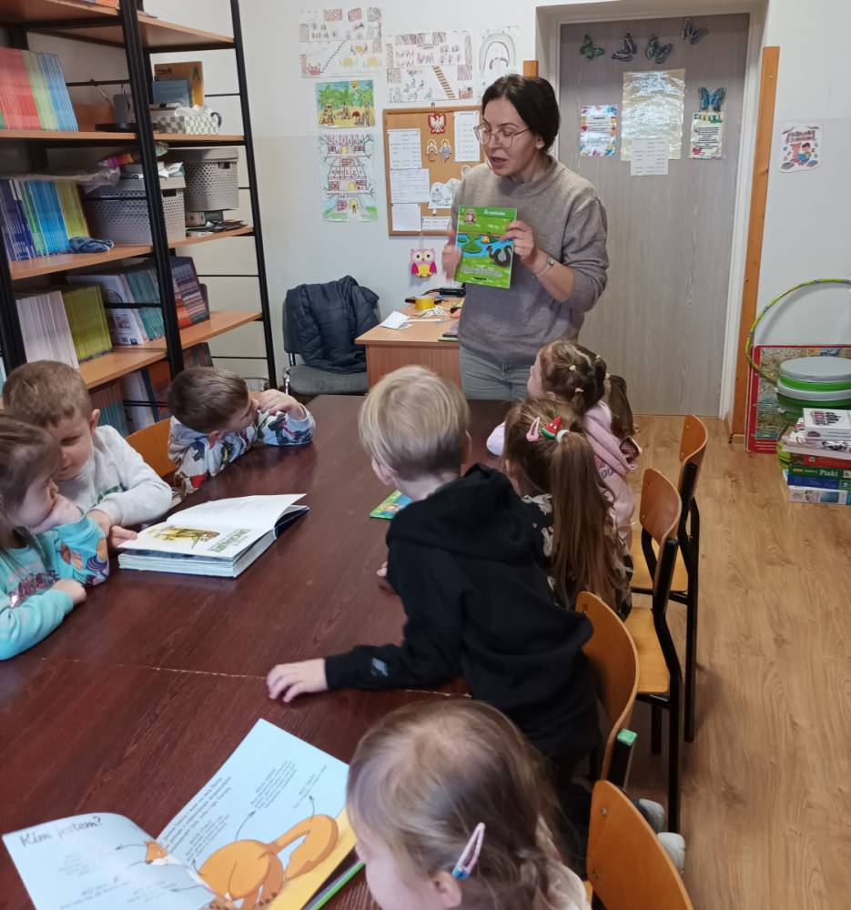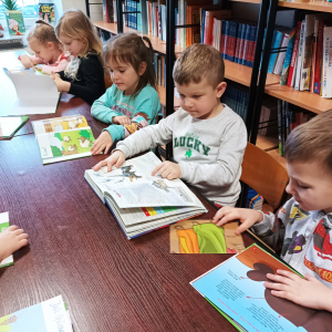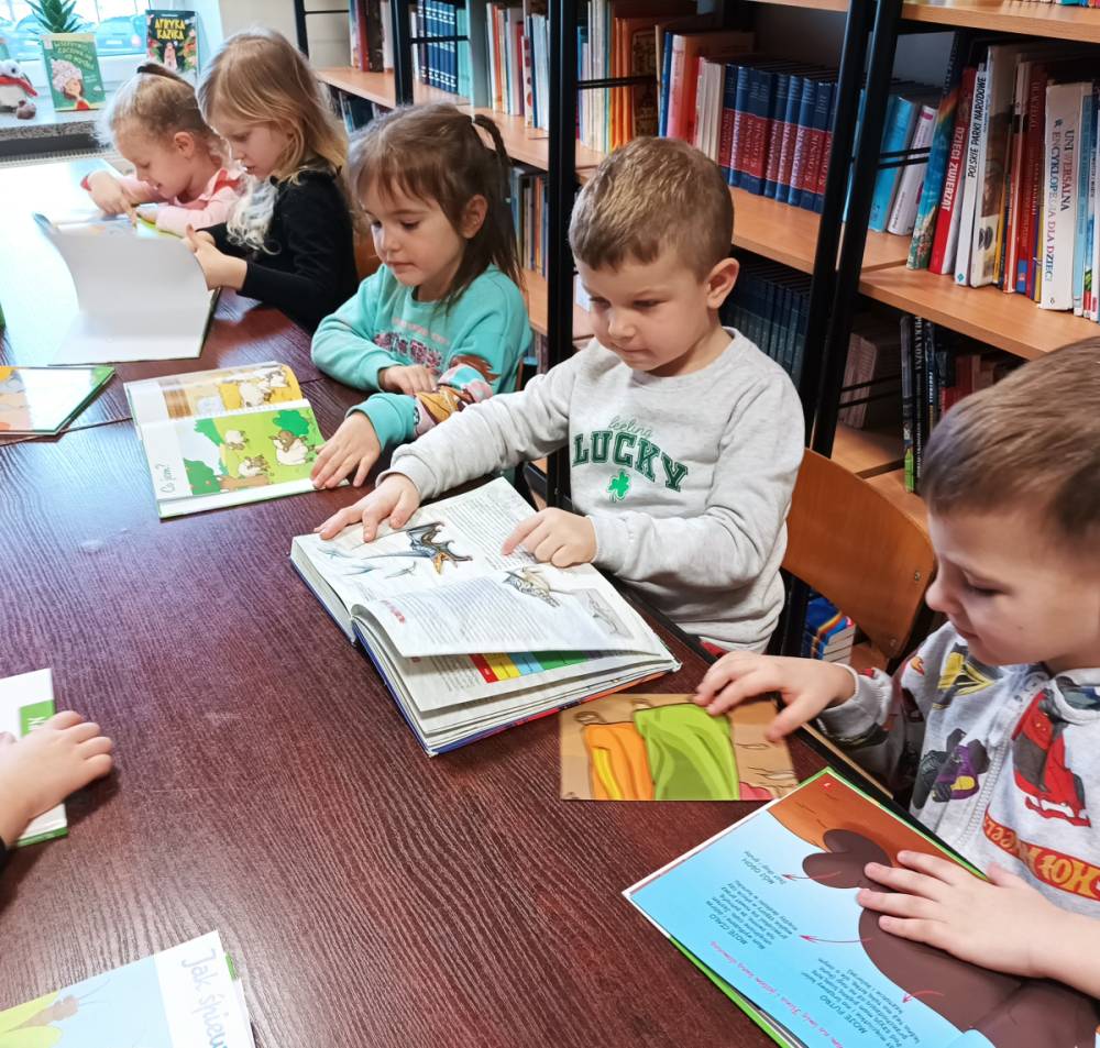 Wiek przedszkolny jest doskonałym czasem na rozbudzanie zainteresowań czytelniczych u dzieci. Przedszkolaki z grypy „Motylki” odwiedziły bibliotekę szkolną. Dla wielu z nich, była to już kolejna wizyta w miejscu gdzie „mieszka książka”. Na początku pani bibliotekarka zapoznała dzieci z miejscem. Przedszkolaki dowiedziały się co należy zrobić, aby stać się czytelnikiem biblioteki oraz jak należy się w niej zachowywać. Podczas wizyty dzieci maiły możliwość obejrzenia książek. Największym zainteresowaniem cieszyły się książki: o zwierzętach, autach, dinozaurach, wróżkach. Spotkanie odbyło się w radosnej i pełnej uśmiechów atmosferze, które umożliwiło dzieciom bezpośredni kontakt z książką.