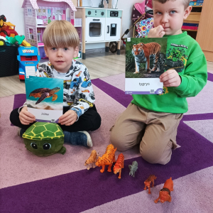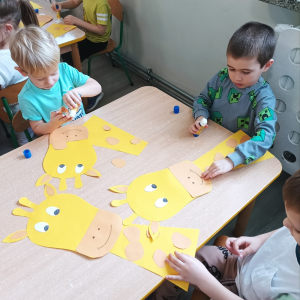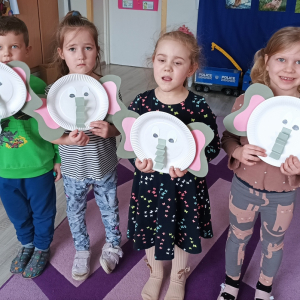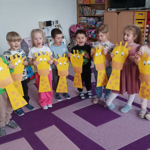 W minionym tygodniu tematem przewodnim realizowanym w grupie „Motylki” były zwierzęta egzotyczne. Podczas zajęć przedszkolaki utrwaliły wygląd i nazwy zwierząt egzotycznych, słuchały ciekawostek o środowisku, w którym żyją. Dzieci przyniosły swoje maskotki, zabawki i książeczki tematyczne, które zostały wykorzystane do zajęć i zabaw. „Motylki” rozwijały percepcję wzrokowo-słuchową, ćwiczyły przeliczanie, śpiewały piosenki. Dużo radości sprawiło im wykonanie kreatywnych prac plastycznych: słonia z talerzyka papierowego, żyrafy z długą szyją, węża z plasteliny.