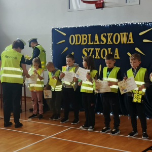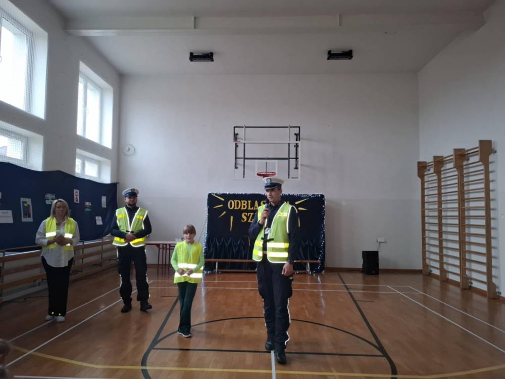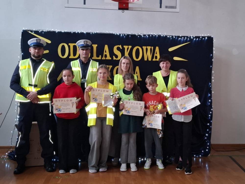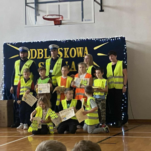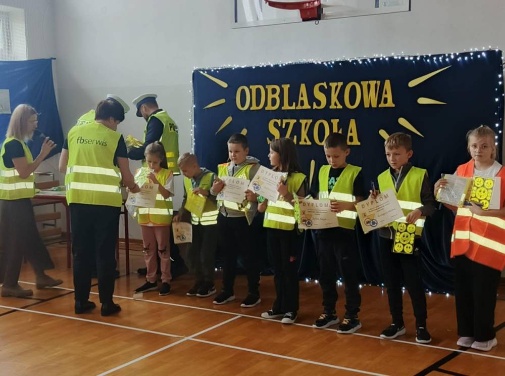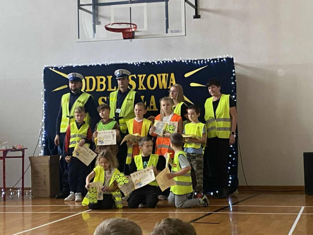 Podczas tego wydarzenia rozstrzygnięte zostały konkursy wiedzy o bezpieczeństwie w ruchu drogowym oraz konkurs plastyczny o tej tematyce. W trakcie podsumowania policjanci, wraz z organizatorami, wręczyli uczniom elementy odblaskowe i drobne upominki, motywując ich do dbania o własną widoczność.