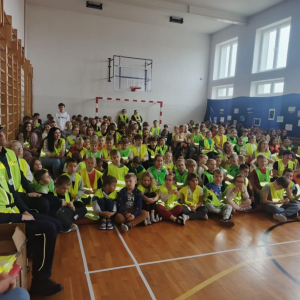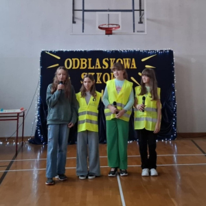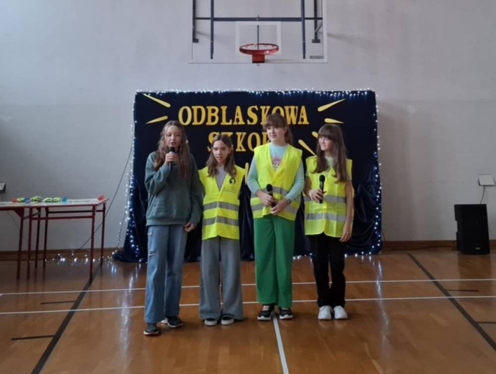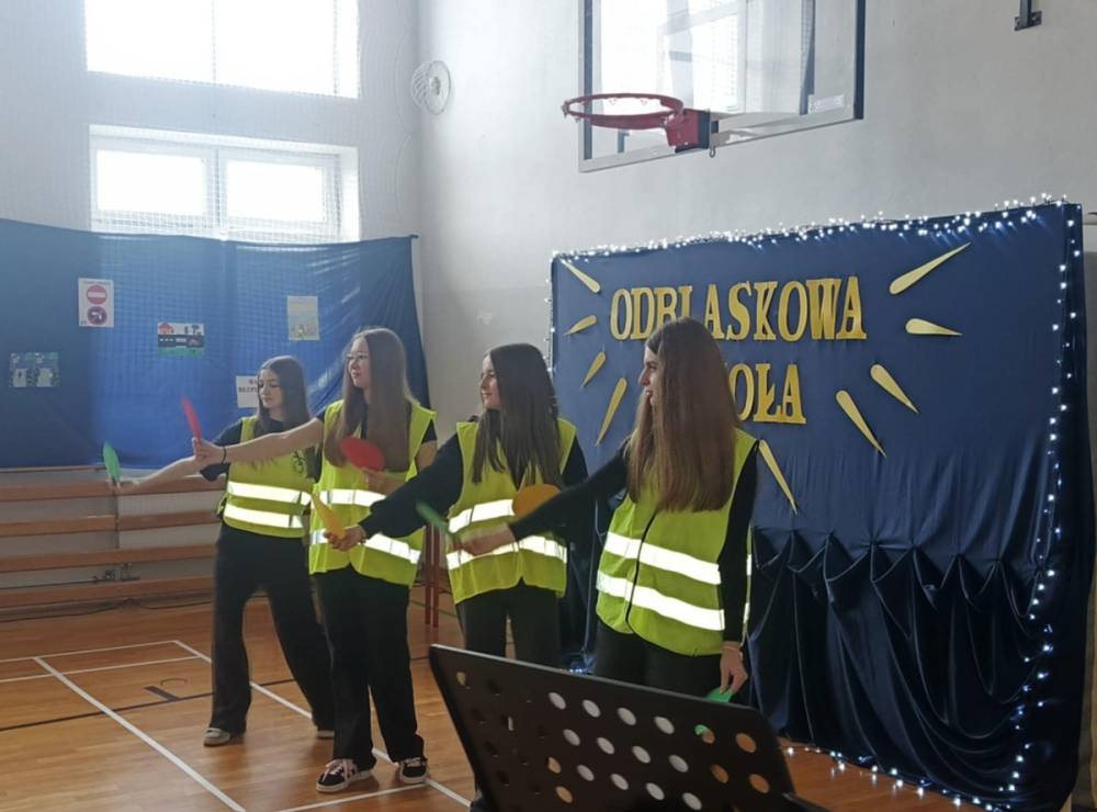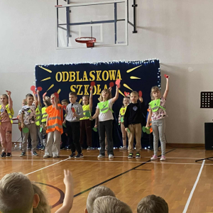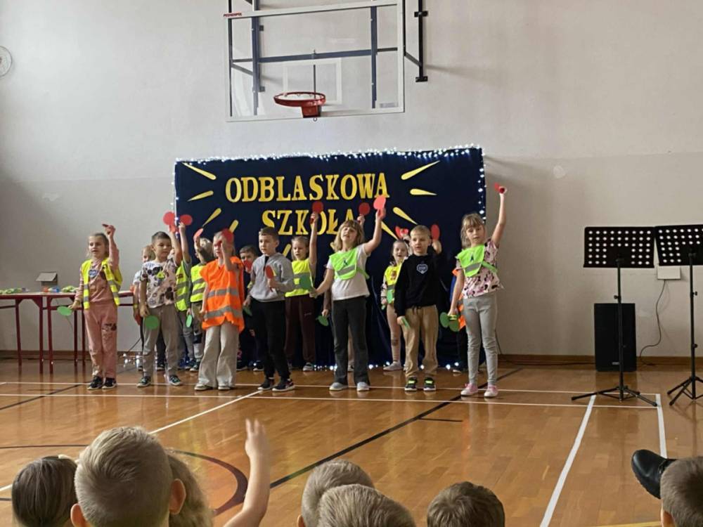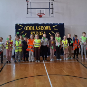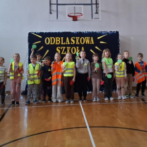 Zorganizowaliśmy Odblaskową Akademię. W wydarzeniu uczestniczyli wszyscy nauczyciele i uczniowie, ubrani w kamizelki odblaskowe, a także przedstawiciele Komendy Powiatowej Policji (KPP) w Łukowie. Uroczystość była podsumowaniem szeregu działań edukacyjnych prowadzonych w szkole, a także niezwykłą Akademią Artystyczną. Podczas spotkania każda z klas miała okazję zaprezentować swój talent artystyczny, wykonując utwór muzyczny, taniec lub recytując wiersz skoncentrowany na tematyce bezpieczeństwa w ruchu drogowym. Odblaskowa Akademia ukazała efekt współpracy całej społeczności szkolnej: uczniów, pedagogów i rodziców.