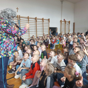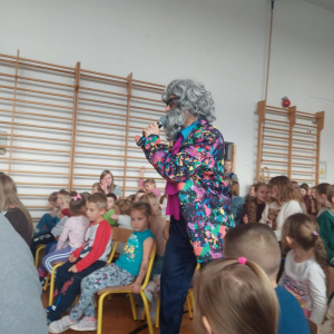 W naszej szkole odbył się spektakl na motywach powieści „Akademia Pana Kleksa” autorstwa Jana Brzechwy. Adaptacja znanej i uwielbianej powieści przeniosła dzieci do krainy pełnej przygód, niesamowitych postaci i nieoczekiwanych zwrotów akcji. Interaktywne elementy powieści sprawiły , że świat „Akademii Pana Kleksa” stał się bardziej żywy dla całej społeczności.
