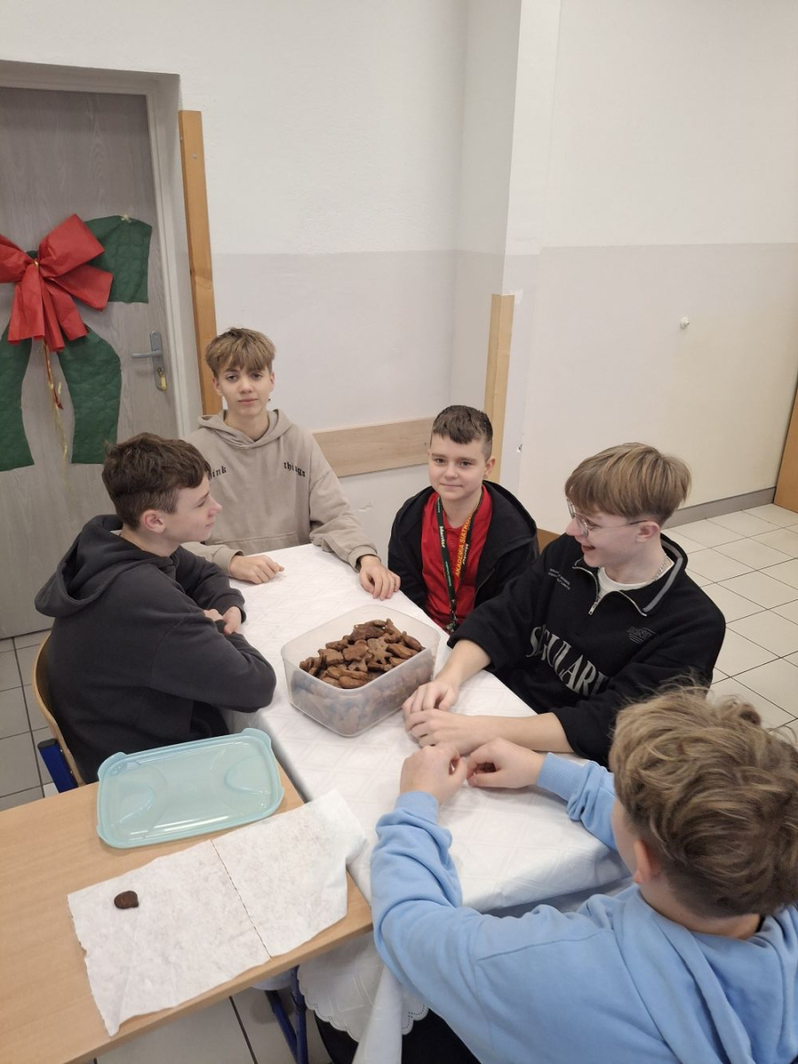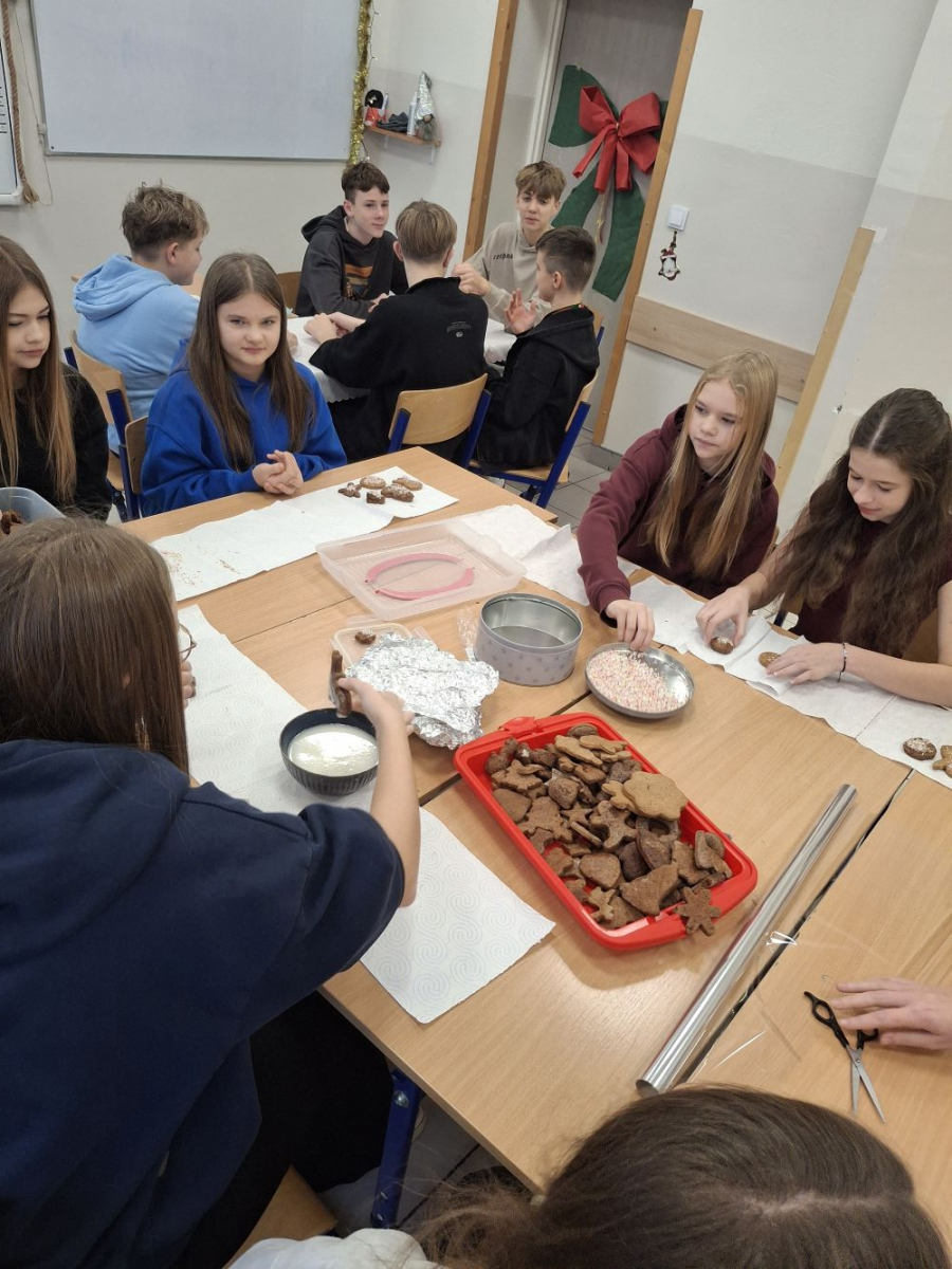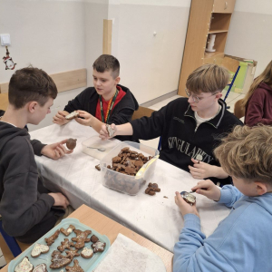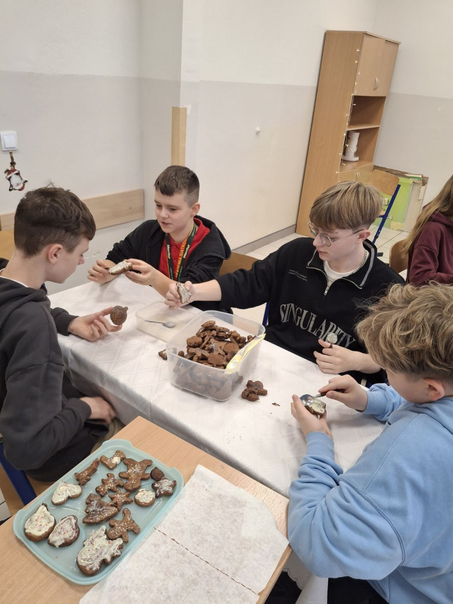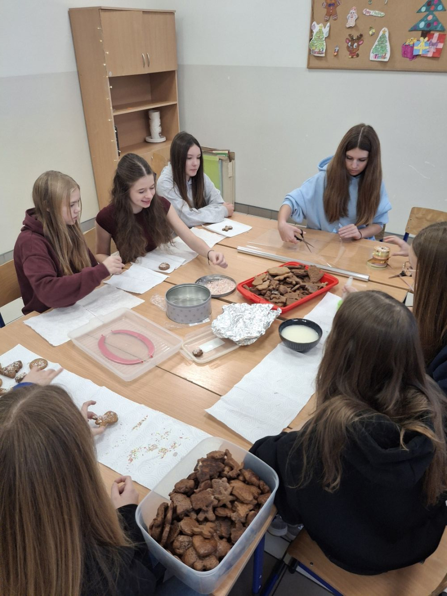 Następnie uczniowie z klas 7 i 8 udekorowali pierniki na szkolny kiermasz bożonarodzeniowy.