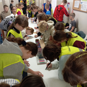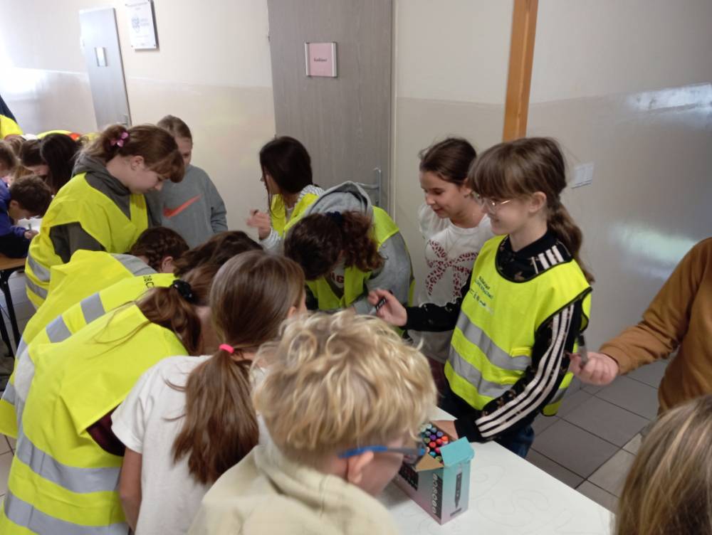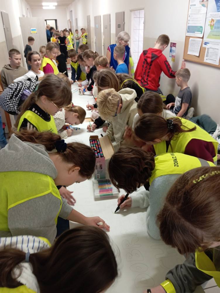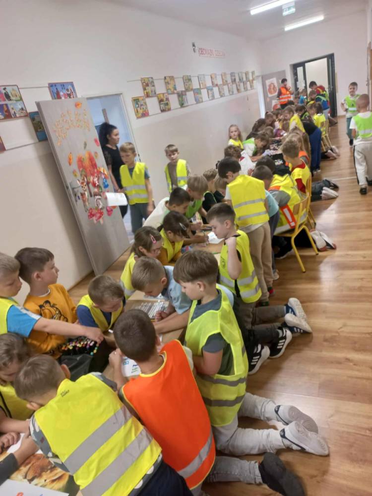 W naszej szkole na jednej z przerw zrobiło się bardzo jasno, słonecznie, wręcz odblaskowo. Uczniowie dużo już wiedzą o tym jak zachować się na drodze idąc pieszo, jadąc rowerem czy hulajnogą. Na Przerwie Pełnej Blasku ubrani w kamizelki odblaskowe wspólnie tworzyli hasła i plakaty zachęcające do noszenia odblasków. Chętnych do wspólnej pracy nie brakowało! To była wyjątkowa przerwa!!!