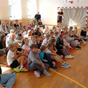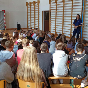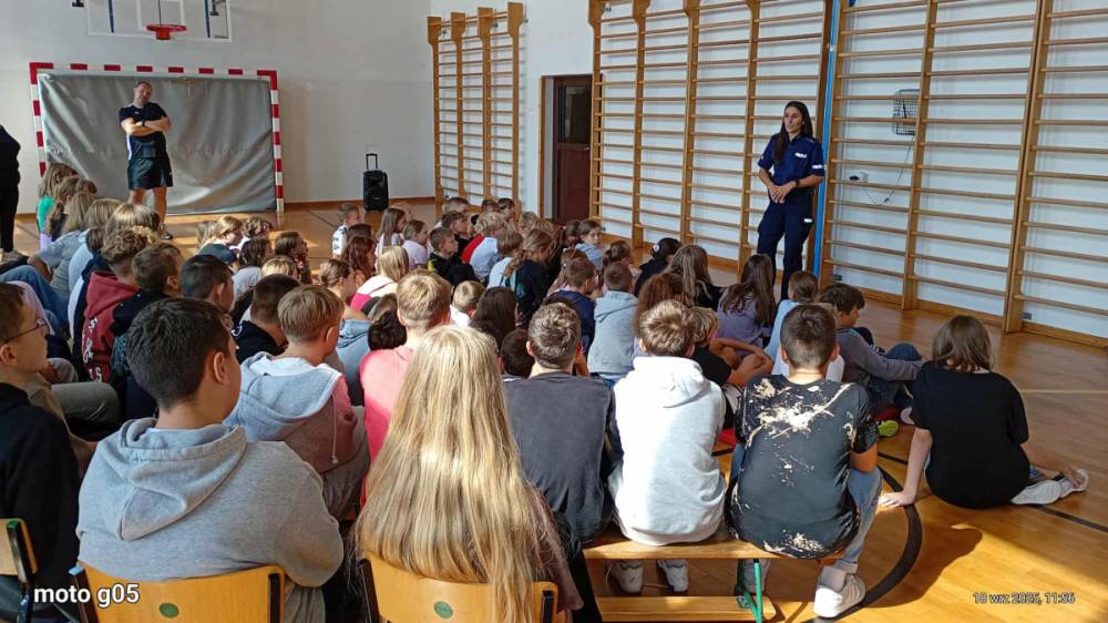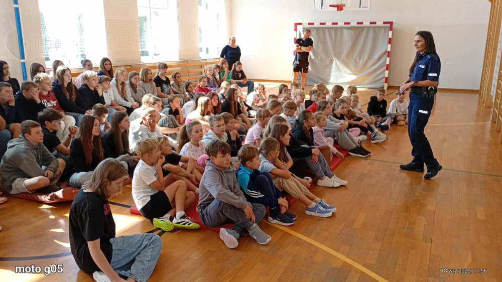 W naszej szkole odbyło się spotkanie uczniów klas IV–VIII z policjantką, poświęcone tematowi bezpieczeństwa na drodze. Podczas prelekcji omówiono zasady bezpiecznego poruszania się pieszych, rowerzystów i użytkowników hulajnóg elektrycznych. Szczególną uwagę zwrócono na przepisy dotyczące korzystania z rowerów i hulajnóg, a także na odpowiedzialne zachowanie w ruchu drogowym. Spotkanie było cenną lekcją, która przypomniała wszystkim, jak ważne jest przestrzeganie zasad, aby zadbać o własne i cudze bezpieczeństwo.