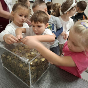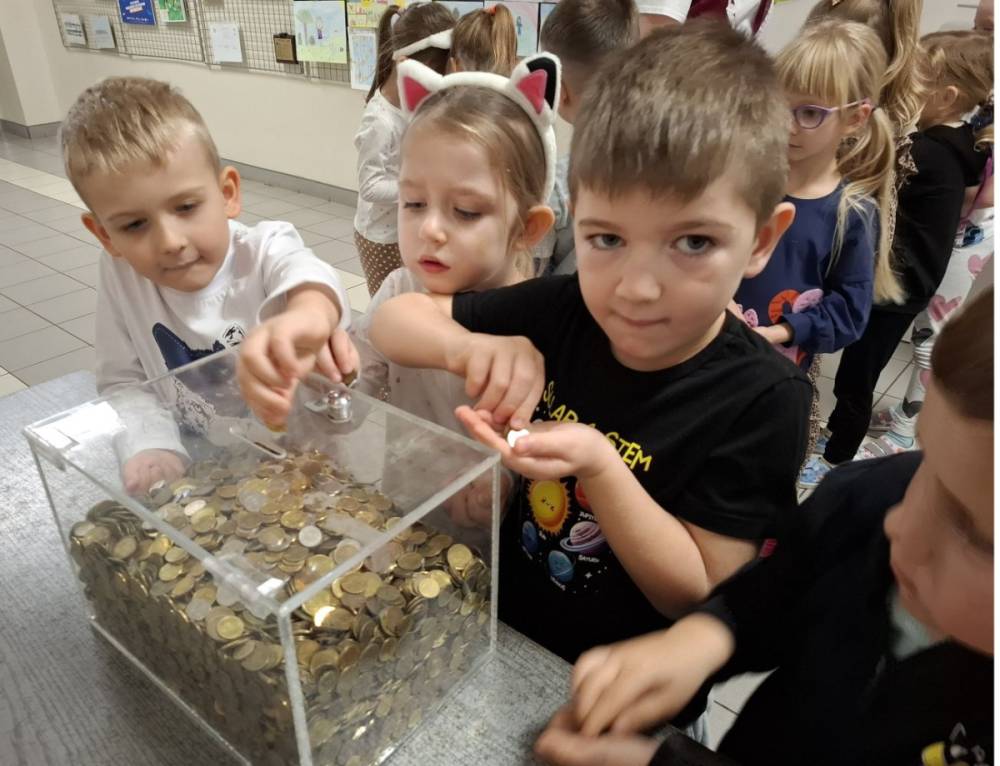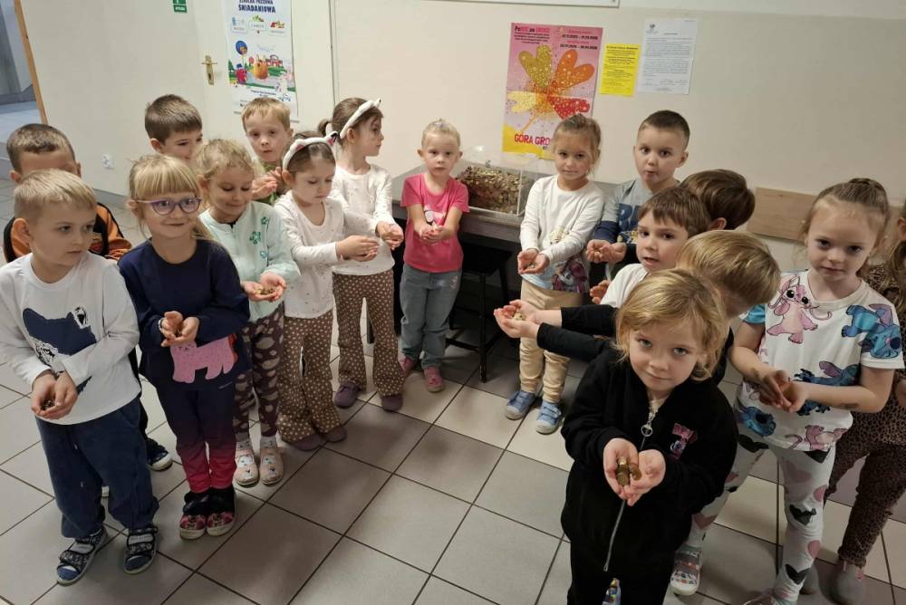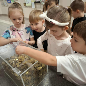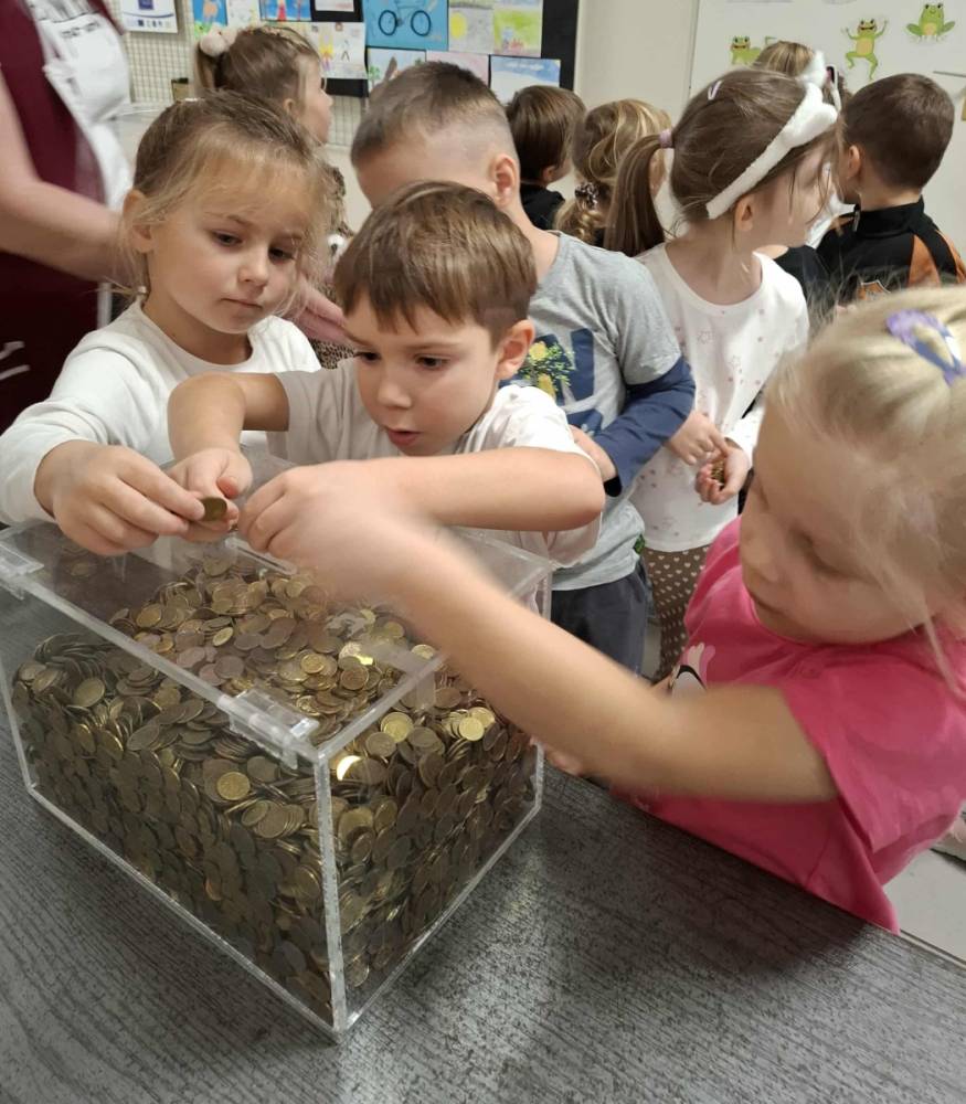 Jak co roku w szkołach i przedszkolach odbywa się wielka zbiórka monet – Góra Grosza. Zebrane pieniądze zostaną przekazane na pomoc psychologiczną i rzeczową dla dzieci, które jej potrzebują i tych, które nie wychowują się w swojej rodzinie. Akcję wspomogły również przedszkolaki z grupy „Biedronki”, które z wielką radością wrzucały swoje przyniesione grosiki o skrzynki.