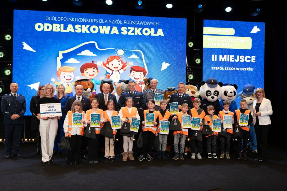 Miło nam poinformować, że Zespół Szkół w Czerśli zajął w konkursie drugie miejsce. To wyróżnienie przyznawane jest za działania na rzecz bezpieczeństwa w ruchu drogowym. W tegorocznej edycji wzięło udział 49 szkół z województwa lubelskiego. Oceny dokonano na podstawie sprawozdań przedstawionych przez szkoły oraz raportów pochodzących od Naczelników Wydziałów Ruchu Drogowego lokalnych komend policji. Marszałek Jarosław Stawiarski i wicemarszałek Piotr Breś wręczyli dziś uczniom nagrody. Delegacja ze szkoły w Czerśli, na czele z koordynatorką akcji Lidią Mikos i nauczycielką Magdaleną Witkowską odebrała czek o wartości 4 tysięcy złotych. Podczas gali uczniom z gminy Łuków towarzyszyli łukowscy policjanci: podinspektor Leszek Dołęga, zastępca komendanta powiatowego policji w Łukowie oraz podinspektor Krzysztof Golba, naczelnik Wydziału Ruchu Drogowego łukowskiej jednostki.