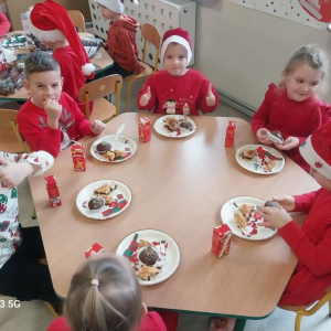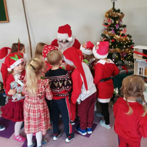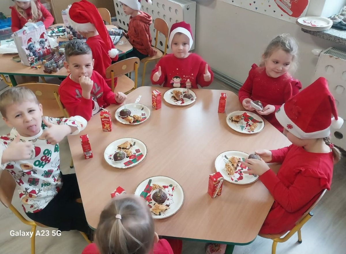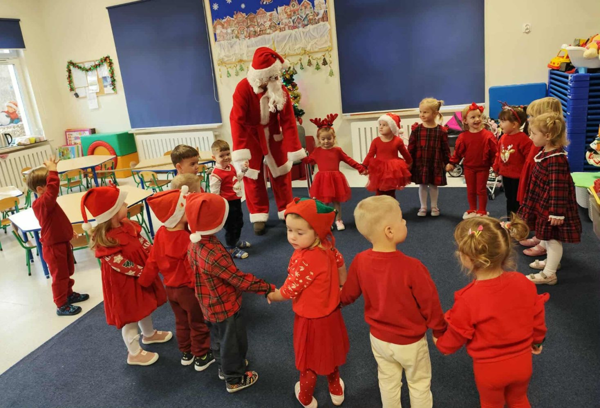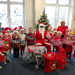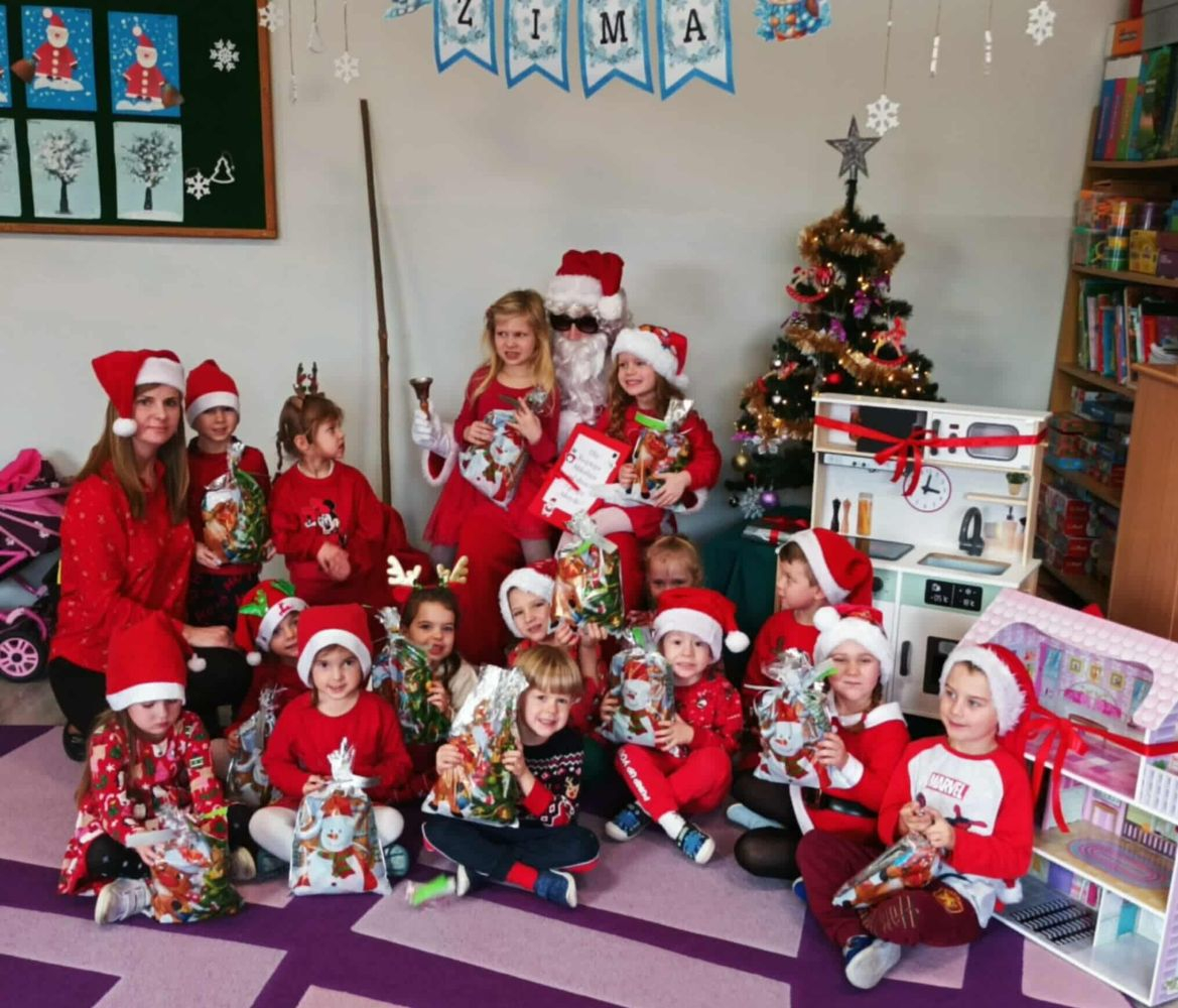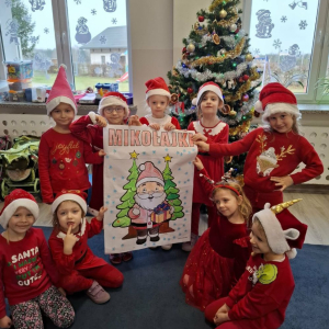 Mikołajki w przedszkolu to ważne wydarzenie dla wszystkich dzieci. Już pod koniec listopada dzieci uczyły się piosenek i wierszyków dla upragnionego gościa. Gdy nadszedł dzień 6 grudnia wszystkie dzieci już od samego rana z niecierpliwością wyczekiwały Mikołaja, zadając ciągle te same pytania: Czy dzisiaj przyjdzie św. Mikołaj? O której godzinie będzie u nas ? Czy przyjedzie saniami zaprzęgniętymi w renifery”. Pytań było mnóstwo, niektóre z nich zabawne inne zaskakujace. Po długich chwilach oczekiwania pojawił się długo wyczekiwany gość - św. Mikołaj. Najpierw było słychać śpiew dzieci, a potem donośne „hou, hou, hou” i pojawił się on – nasz ukochany św. Mikołaj! Gość z Dalekiej Laponii wywołał wiele radości i uśmiechu na twarzach przedszkolaków oraz zachwyt jego obecnością. Podczas spotkania Mikołaj pytał dzieci: Czy były grzeczne?, Czy zjadają wszystkie posiłki w przedszkolu? itp. Następnie każda grupa przedszkolna zaprezentowała przed Mikołajem wierszyk lub piosenkę, aby zasłużyć na wymarzony prezent.