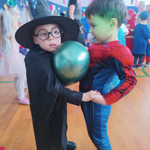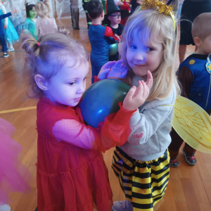 Przedszkolaki przyszły przebrane w niezwykle pomysłowe stroje. Wśród nich można było spotkać księżniczki, wróżki, superbohaterów, strażaków, policjantów, zwierzątka oraz wiele innych bajkowych postaci. Każde dziecko z dumą prezentowało swój kostium podczas wspólnej zabawy i tańców.