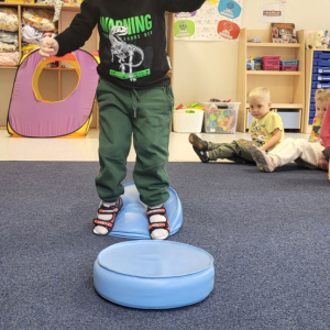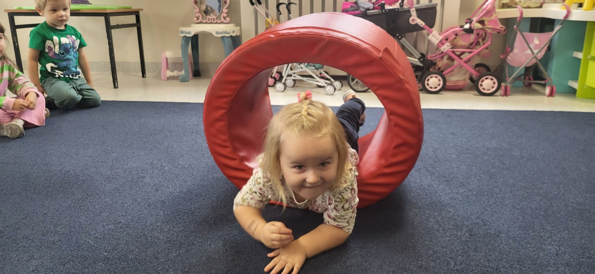Podczas zajęć w ramach projektu Sensosmyki dzieci z grupy "Pszczółki" zanurzyły się (czasem dosłownie) w świecie propriocepcji, czyli czucia głębokiego. Było dużo ruchu, śmiechu i intensywnej pracy mięśni.