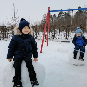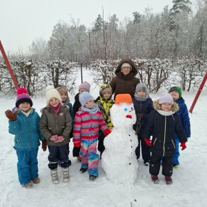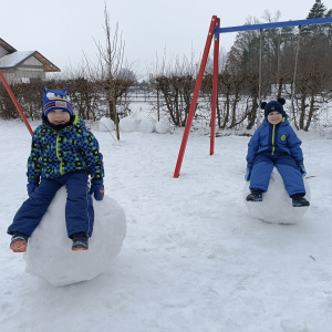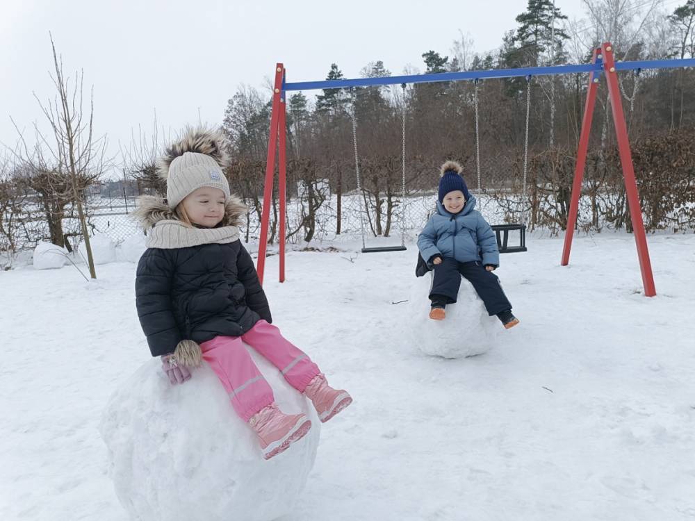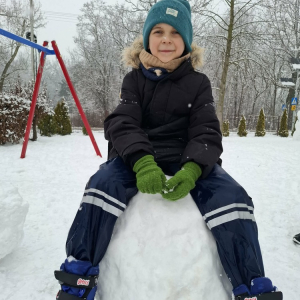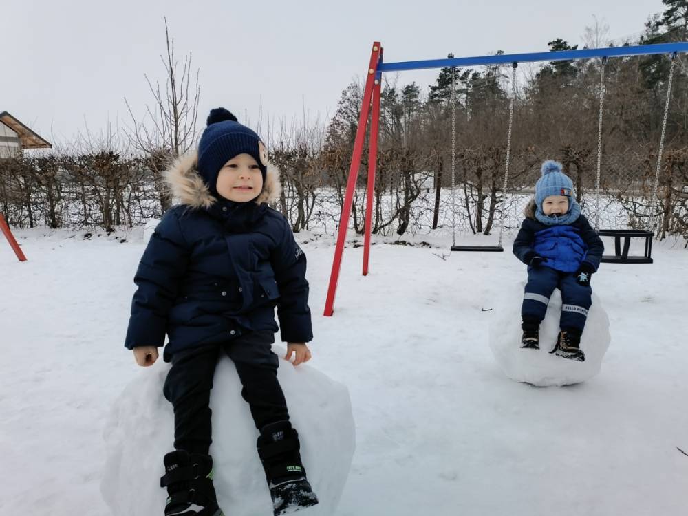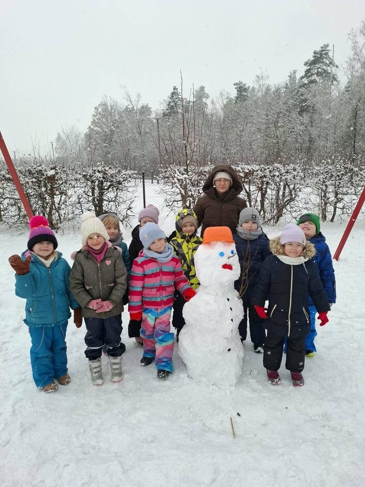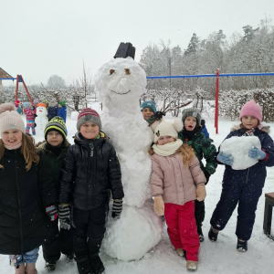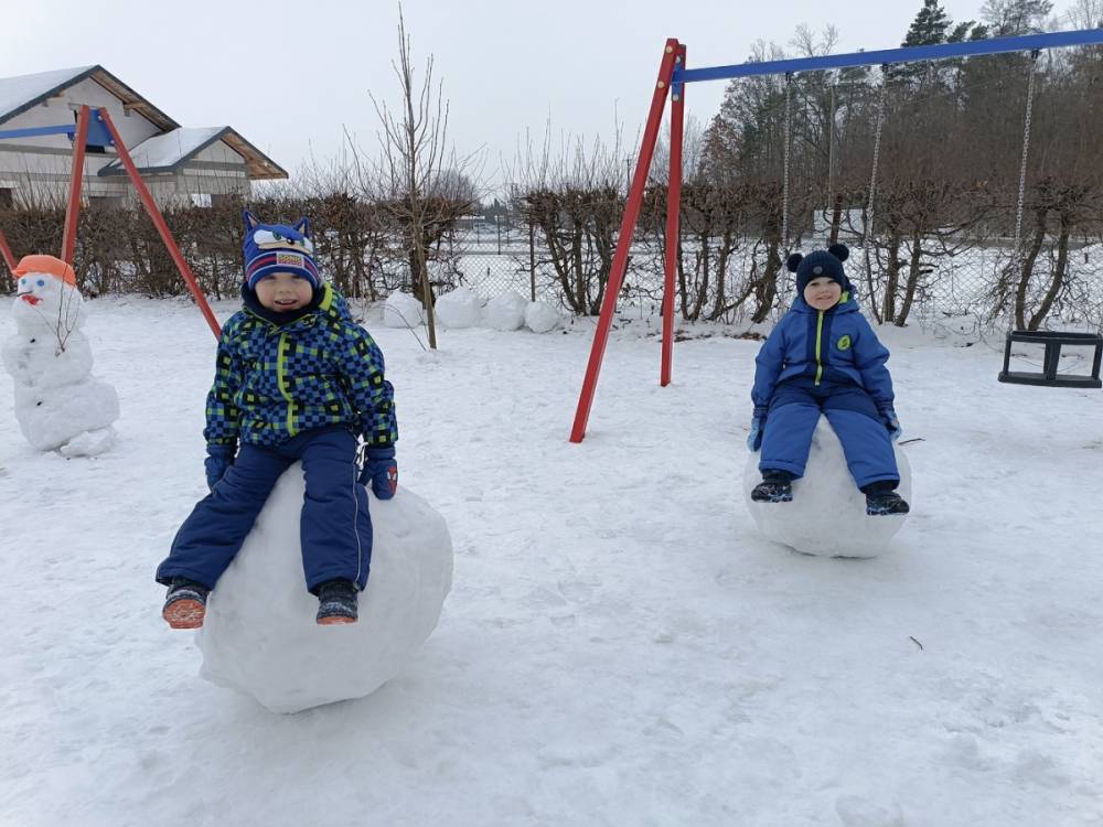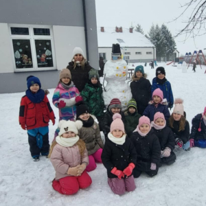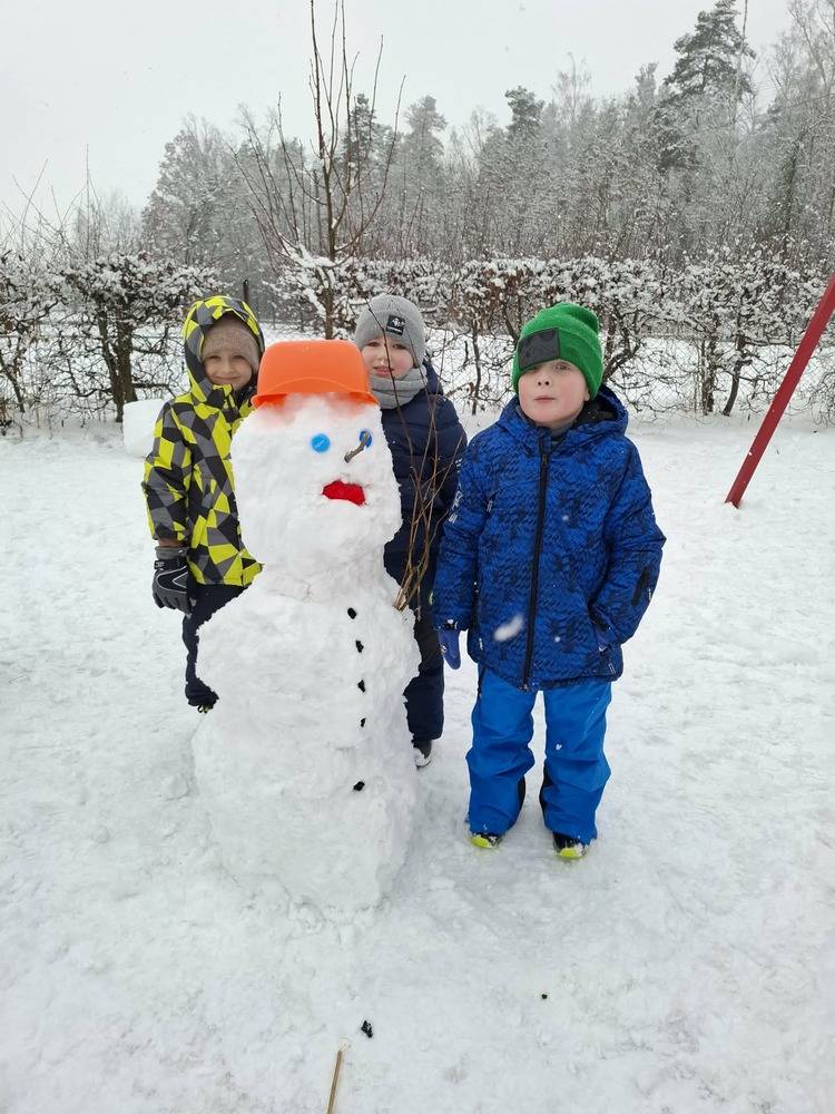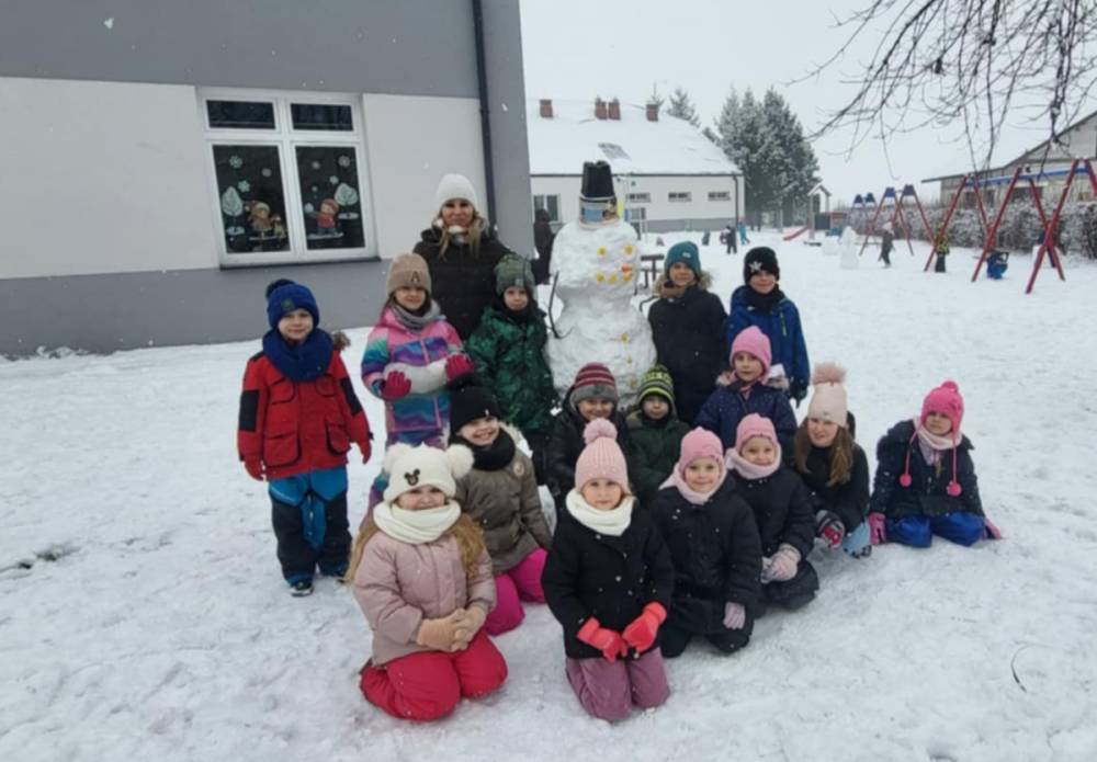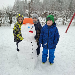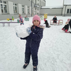 Przedszkolaki z wielkim zaangażowaniem lepiły bałwany, tworząc prawdziwe śnieżne dzieła sztuki. Nie zabrakło śmiechu, współpracy i pozytywnej energii. Zabawy na śniegu sprawiły wszystkim wiele radości, a jednocześnie były świetnym sposobem na zdrowy ruch i kontakt z naturą.