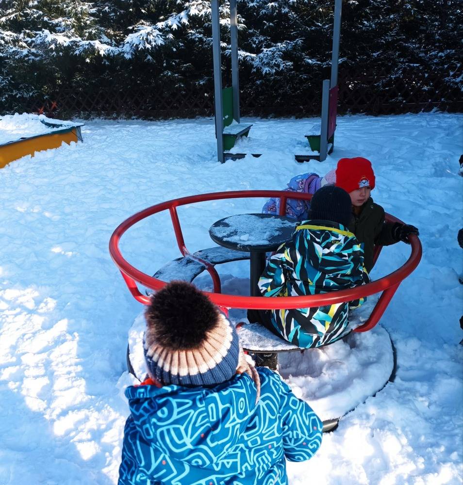 Korzystając z pięknej, zimowej pogody, dzieci z naszego przedszkola spędziły czas na radosnych zabawach na świeżym powietrzu. Śnieg stał się doskonałą okazją do aktywności ruchowej, integracji oraz wspólnej zabawy.